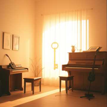 An emotionally safe and habit-forming anime protagonist instrumental for the moment before leaving home, soft piano, warm nylon guitar, airy pads, subtle chimes, light steady drums, comforting repeated motif, gradually blooming into a hopeful lift, like standing at the door with your bag on, taking one deep breath, opening the door, and stepping into the morning as a changed version of yourself, not loud confidence but calm conviction, inspiring, intimate, and gently addictive, No epic battle drama, no sadness, no aggressive rhythm, no dominant vocals, signature opening motif, daily ritual feeling, familiar emotional loop, comforting repetition, habit-forming melodic pattern, subtle awakening energy, quietly heroic, morning transformation cue