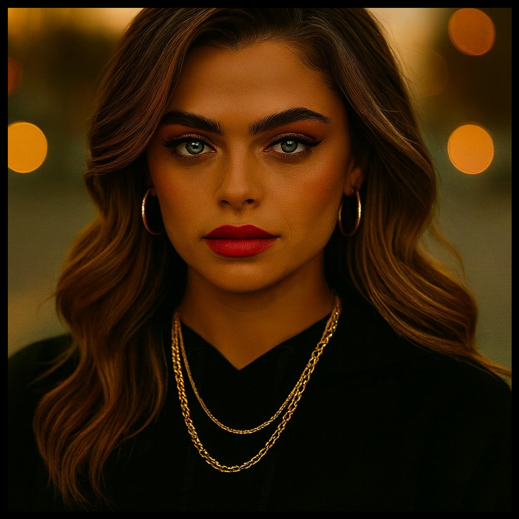 Slow, sultry rap/rock fusion at 68–72 BPM with confident, swagger‑heavy female vocals; delivery is smooth, smirking, breath‑leaning, and seductive, riding a spacious groove, Production built on deep swung kick, tight metallic snare, syncopated hi‑hats, and a warm gliding bassline, Guitars are minimal and slinky—clean tone with light grit, single-note riffs, bends, and slides used as accents, never overpowering, Add soft ambient pads, reversed textures, and subtle reverb tails to fill space, Overall vibe is slow-walk confidence, smoky attitude, and controlled heat