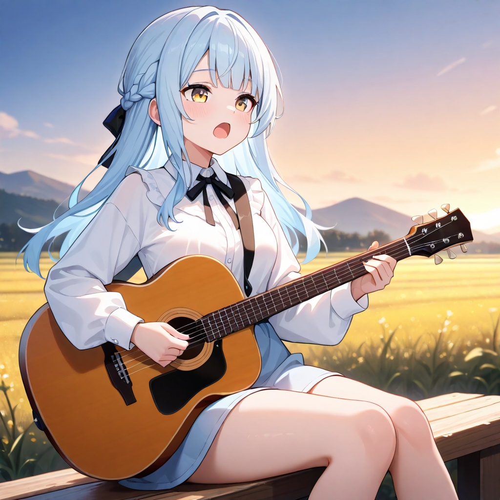 J-pop, piano, warm guitar sound, masterpiece, high quality, japanese, female voice, emotion, strings, ambience, remaining years, breathing