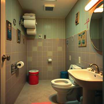 Punk-Rap, fast tempo, distorted guitars, aggressive drums, comedic vocal tone, chaotic energy, mix of yelling and rapping about a sudden desperate need to poop