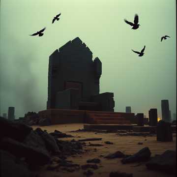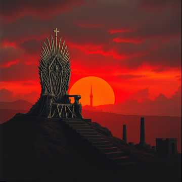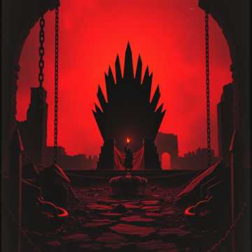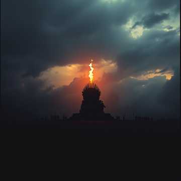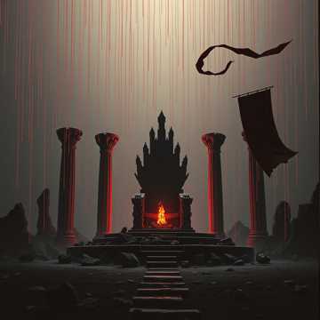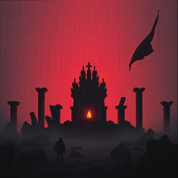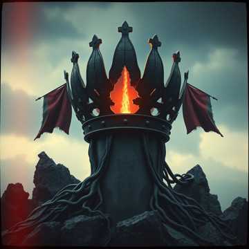 metal, blues, crushing riffs layered with eerie melodic leads, deep, epic metal; slow, resonant male vocals deliver haunting imagery, cinematic strings and thunderous percussion add grandeur and menace, heavy blues, doom metal