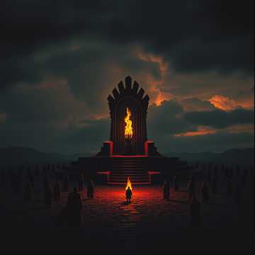 This style channels epic heavy blues-metal rooted in doom-infused tradition, balancing molten riffwork with regal melody, The production is dry yet powerful—every guitar crunch feels forged in iron, with bass grinding beneath in unison, while tom-heavy drums strike like marching warbeats, The mood is triumphant yet solemn, invoking ancient honor and mythic battle, Verses ride on steady mid-tempo grooves and palm-muted baritone riffs; choruses surge open with layered harmonies and heroic chord lifts, Vocals are clean, commanding, and sermon-like—gravel-warm yet stately—often doubled or lightly reverbed for grandeur, Guitar solos emphasize phrasing and sustain over flash, using modal bends, gallops, and harmonized leads to echo the song’s sense of glory and defiance, The result is metal that feels both ritualistic and righteous—ritual fire wrapped in steel