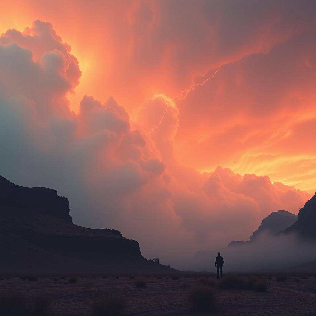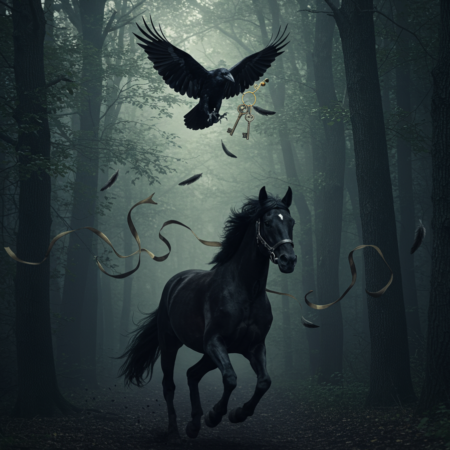 Style: 1970’s Hard Rock / Early Heavy Metal, epic, heroic, quadruple guitars with harmonized riffs and arpeggios, driving galloping basslines, dynamic drums with tempo shifts, male vocals dynamic from whispers to soaring wails, instrumental intros and solos, vocal lines integrated with chord progressions, alternating driving hard rock and atmospheric passages, themes: solitude, loss, ethereal journeys