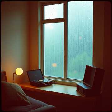 528hz soundscape, slow, soft, lo-fi, subtle rain ambience, warm, mellow rhodes piano chords, nostalgic, warm vinyl crackle, lo-fi chillhop, dreamy pad texture, jazz, 8d binaural, smooth, bassline, relaxed tempo, uplifting, soft nylon guitar plucks, jazzy minor 7th harmonies, mellow, jazzy, smooth bassline