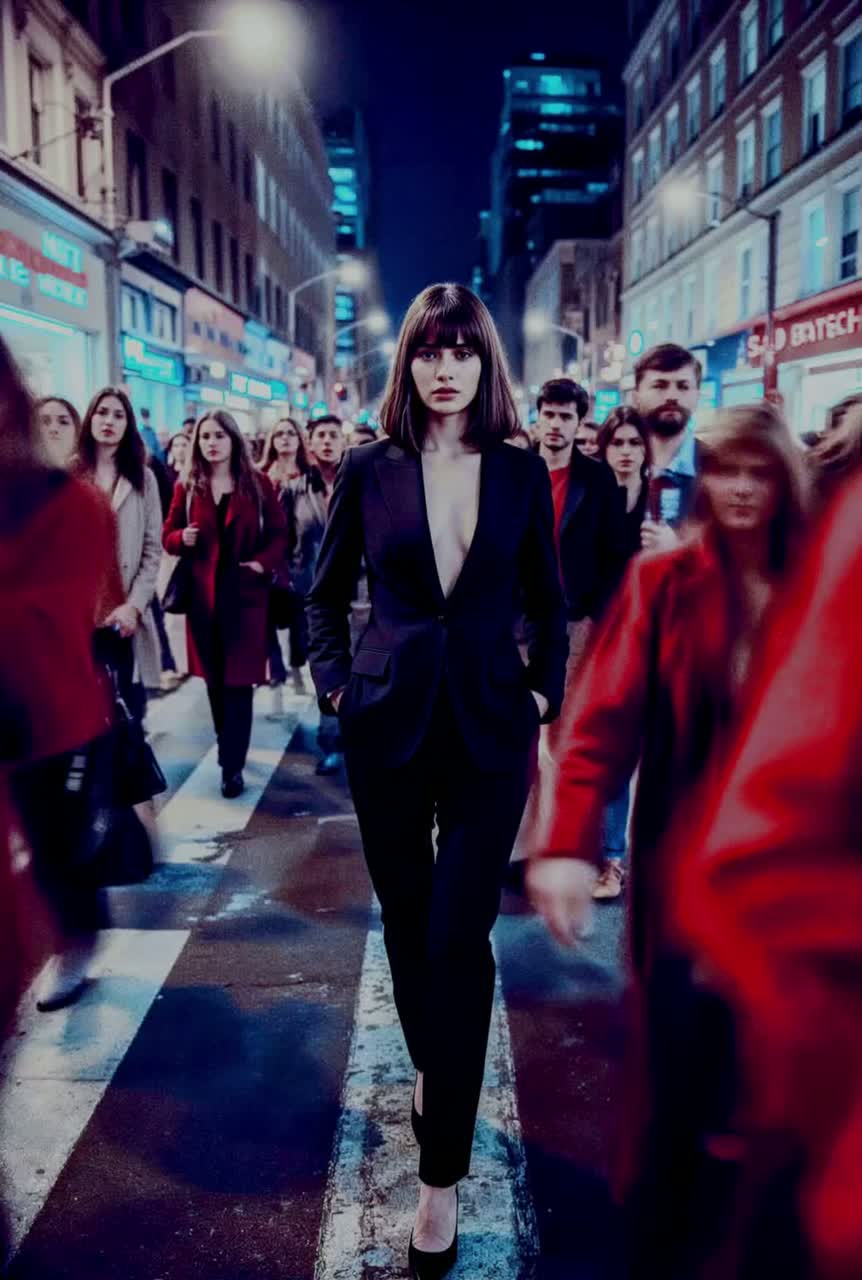 Dramatic classicalβdisco fusion at 122 BPM, Opens with aggressive fortissimo orchestral string stabs in a repeated dramatic motif, dry attacks with no lush tails, The kick drum collides early beneath the classical motif; the disco groove submits to orchestral authority before locking in, Premium four-on-the-floor with deep, minimal bassβheavy, elegant, never playful, Orchestral elements remain rhythmic, chopped, and percussive rather than melodic, Female lead vocal in a low to mid register, close-mic, controlled, almost spoken at first, never pleading, Hypnotic mantra-based chorus designed for loop listening, Strategic silences, stripped drops, and subtle timing tension create emotional risk, Overall mood: cinematic drama, nocturnal liberation, embodied presence, high-end sound, adult disco with authority