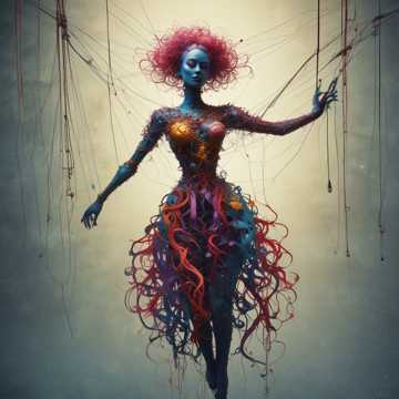 Djent, slow metal, dark, psychotic laughter, really creepy, haunting, Halloween, high- notes, male bass singer
