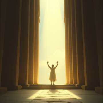 Sacred oratorio, modern classical requiem, slow-burning dramatic arc, evolving movement, dark choral opening transforming into luminous sacred harmony, male soloist with mixed choir, cinematic orchestral texture, dissonance resolving into radiant consonance, heavy percussion and low strings giving way to sustained strings and organ, gradual tempo shift, emotionally intense, spiritual transcendence, minimal repetition, long-form composition, reverent, powerful, contemplative, 4–6 minute movement