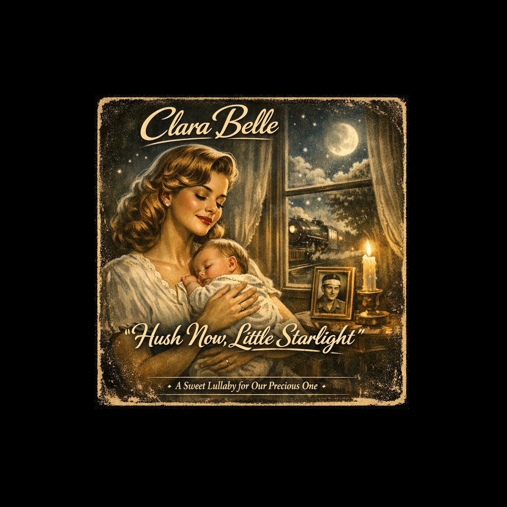 Brushed snare, Light strings or background “ooh” harmonies in the final chorus, Clara Belle’s Lullaby, (A soft 1950s cradle song) A tender lullaby wrapped in soft 50’s warmth, where Clara Belle sings hope into the quiet night