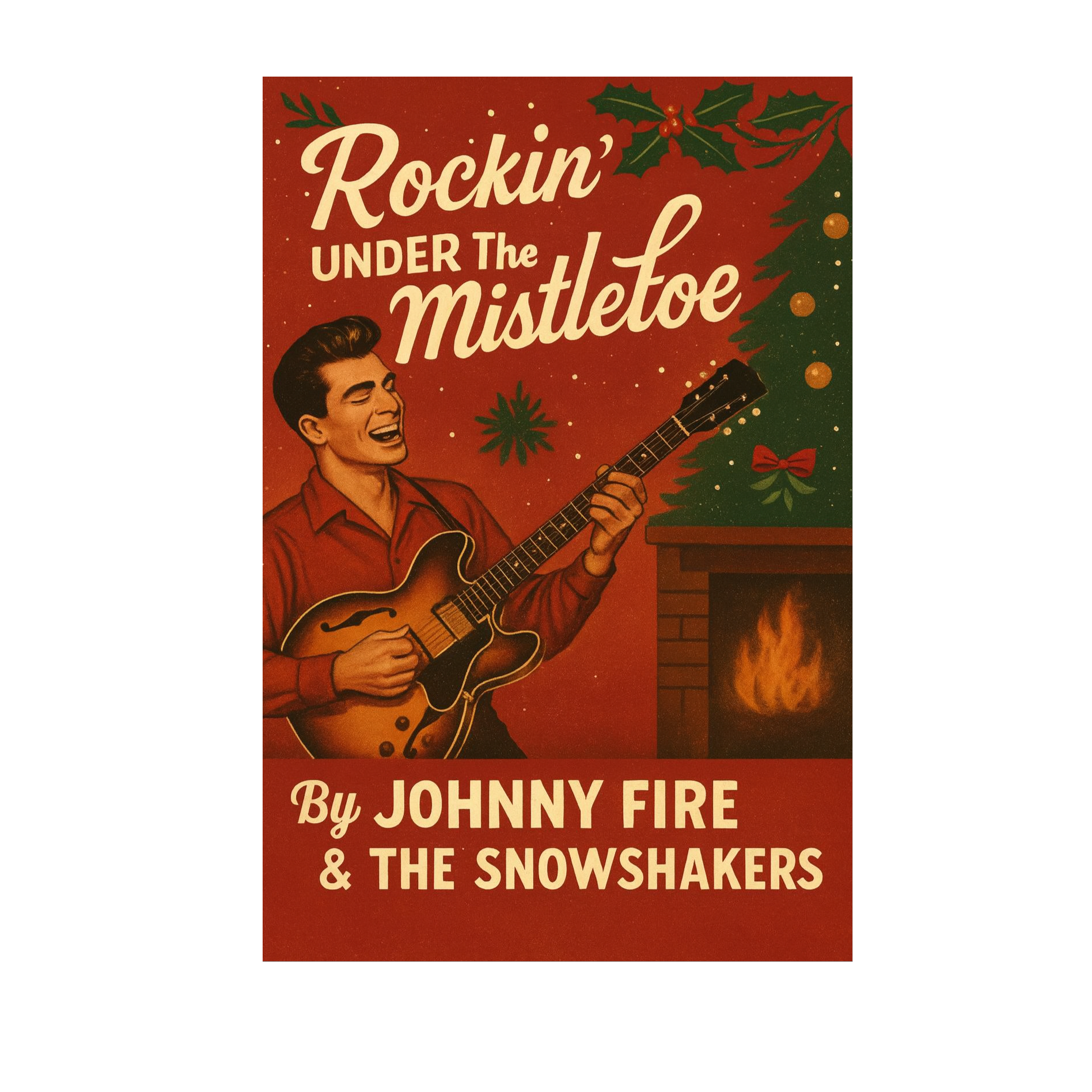 60’s Rock’n’Roll Christmas Banger, Vintage warmth, tape saturation, big-room ambience, Bright twangy Telecaster – clean-but-biting licks, Slapback echo – 60´s -style slapback (80–120 ms) Rockabilly riffs – snappy, dancing, melodic, Wild solo – bluesy bends, double stops, little chromatic slides, Walking rock’n’roll bass – upright-style attack, Punchy, warm, woody tone – think early Sun Records