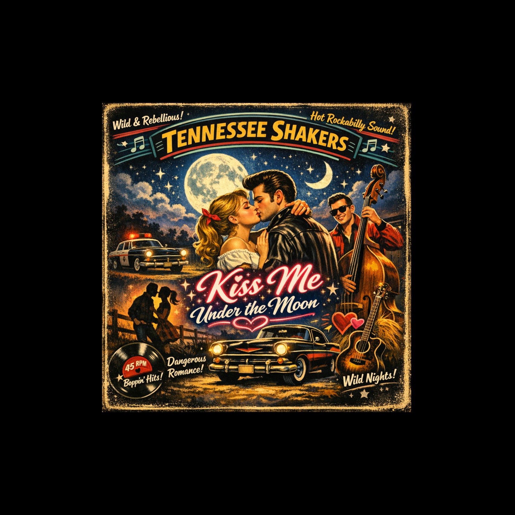 Style: Up-tempo 50s/60s rock’n’roll with a Latin acoustic guitar groove, driving drums, handclaps, and a raw, raspy vocal, Feel: Urgent, rebellious, joyful — impossible to stand still, Style: Up-tempo vintage rock’n’roll driven by rhythmic acoustic guitar with a Latin flair, punchy drums, handclaps, and a raw, raspy lead vocal, Energetic, rebellious, and irresistibly danceable with a youthful, feel-good spirit, Style: Classic 50’s/60’s rock’n’roll with a rockabilly heart — twangy guitars, slap-back rhythm, upbeat beats for the A-side, and tender, slow-dance grooves for the B-side, Think jukebox nights, dusty boots, summer heat, and teenage hearts on fire