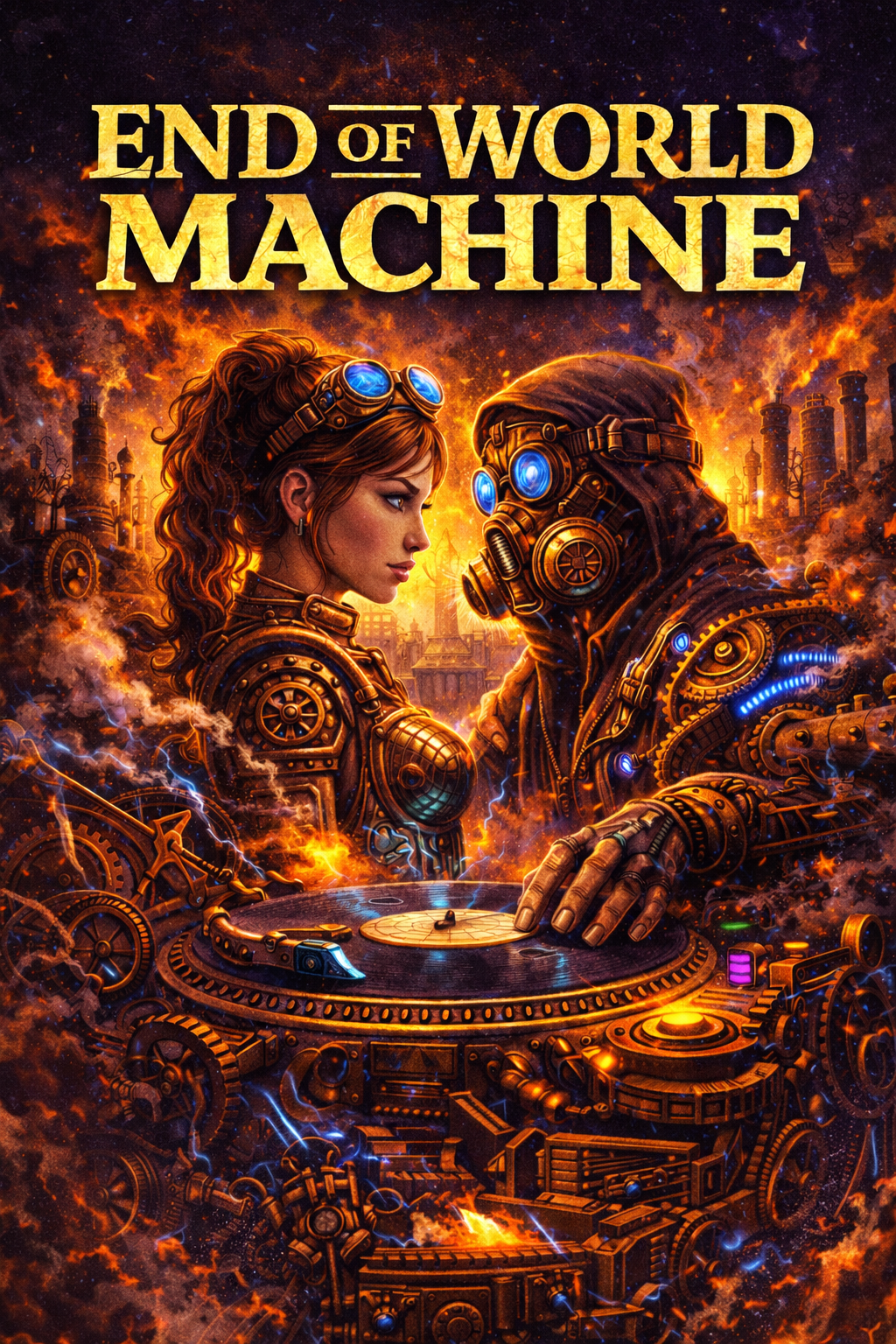 Steampunk Rock/Rap fused with Industrial EDM, Distorted basslines, brass stabs, metallic percussion, and a swaggering vocal flow, The tone shifts between theatrical grit and mechanical chaos, Guitars grind like pistons; drums hiss with steam, Each chorus evolves to mirror the collapse of a steam-fueled world