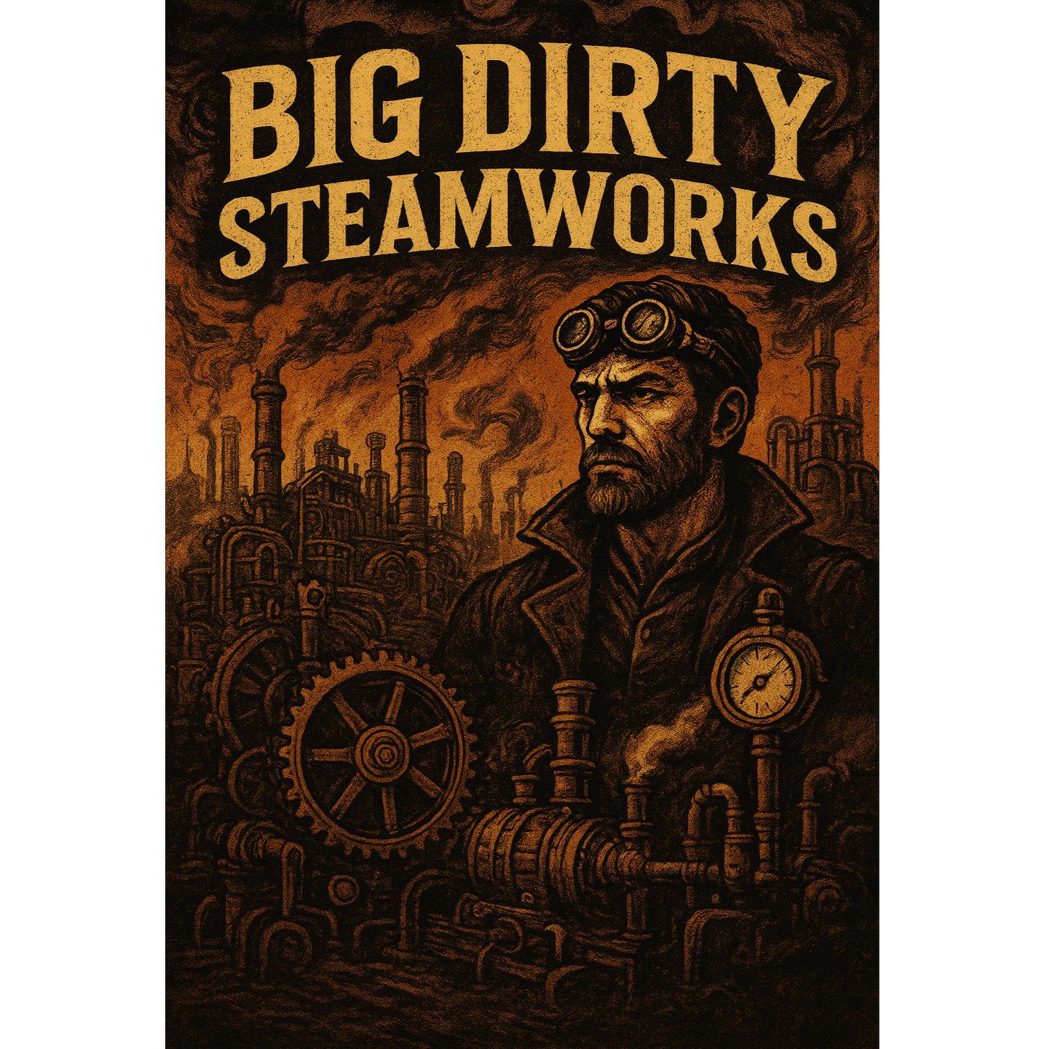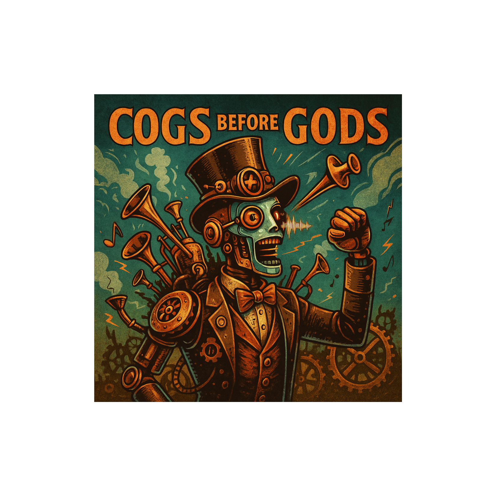 Epic steampunk industrial rock opera – grinding guitars, steam-hammer drums, massive pipe-organ brass, calliope-from-hell leads, drunken Victorian choir, locomotive percussion, gear-grind SFX and occasional exploding boilers