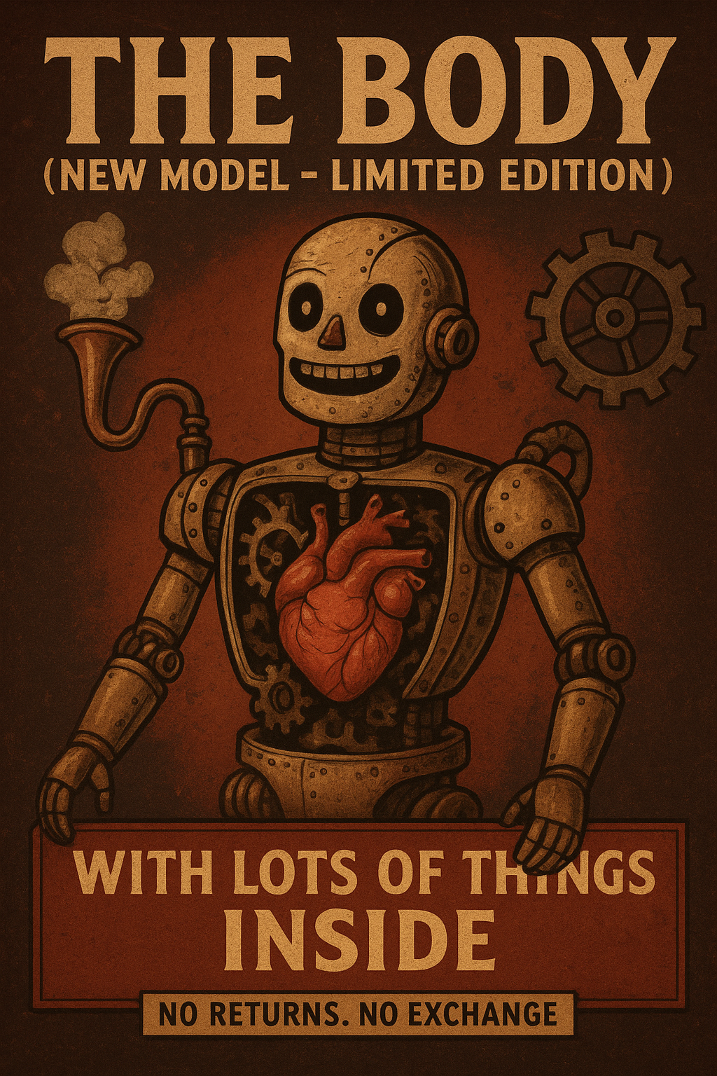 Steampunk horror ballad with haunting industrial ambience, Steam hisses, ticking clockwork, heavy brass drones, and eerie mechanical percussion, Ghostly choirs blend with distorted strings and metallic echoes, Vocals deep, dramatic, and theatrical — blending storytelling with dread, Tempo slow and heavy, like a heartbeat in a fog of smoke and rust