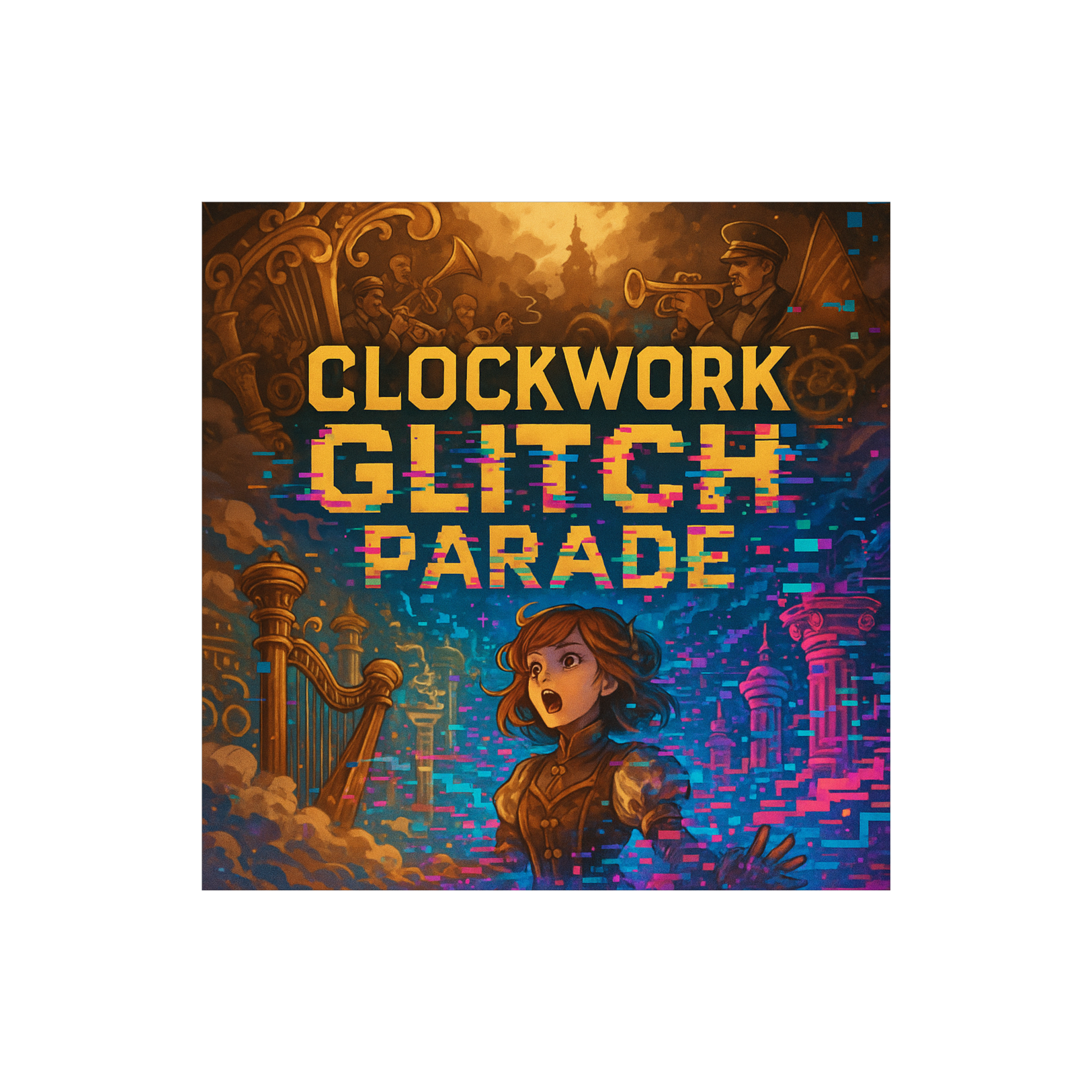 This ambitious track opens with full orchestra—lush strings, grand brass, timpani—then shifts to a melodic verse with solo female vocal and orchestral support, Bridge introduces harpsichord and glitch textures, A tempo-stuttered transition bursts into frenetic chiptune: 8-bit leads, programmed drums, and robotic vocals echoing the verse, Chorus powerfully melds triumphant chiptune with glitch-processed orchestral samples, A distorted waltz follows, featuring off-kilter rhythms, mechanized vocals, and fractured time, Solo spotlights a chiptune organ riff and brass as noisy percussive hits, The final chorus blends peak-energy chiptune with bright orchestral shards, Outro slows—chiptune dissolves, clock ticks, then silence