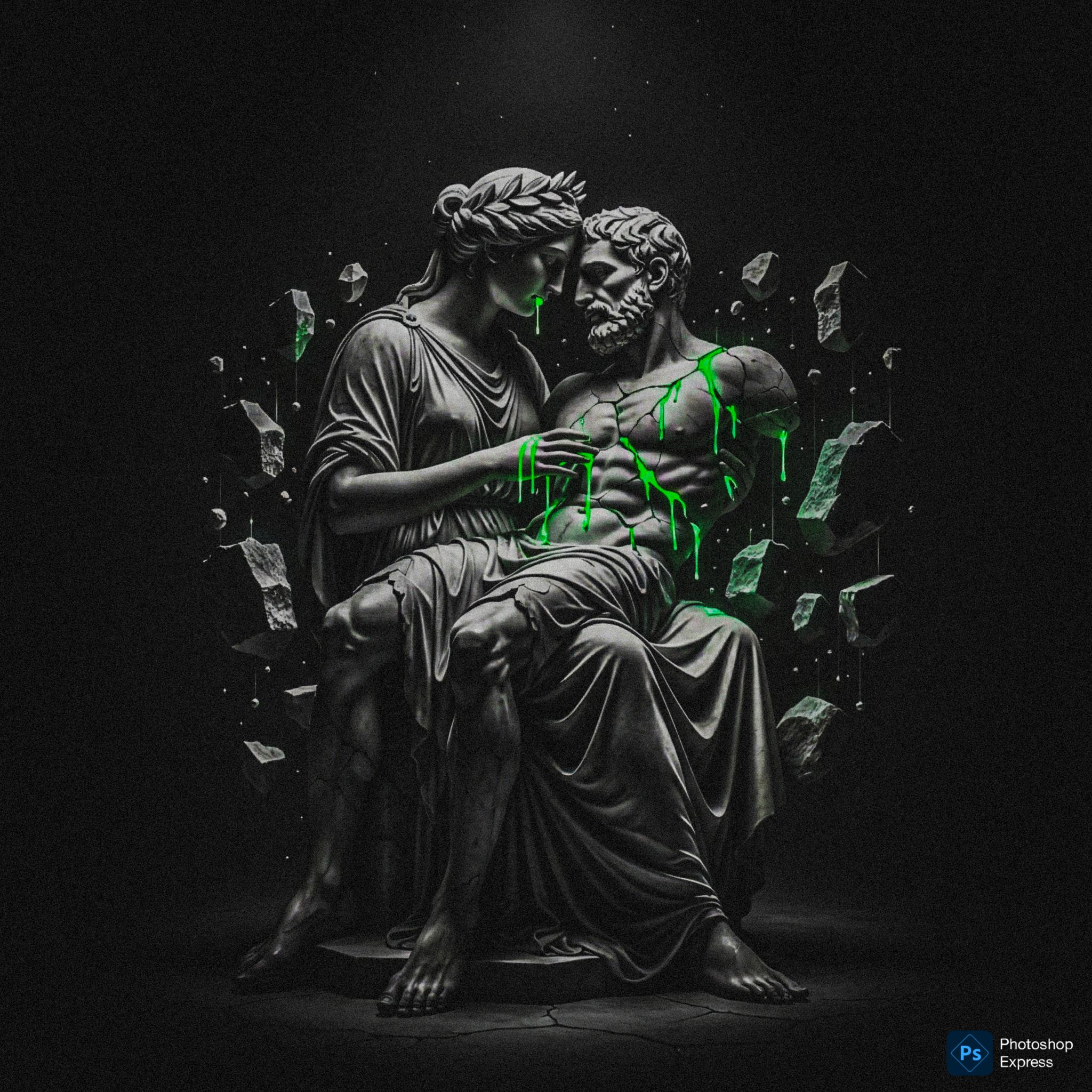 dark, heavy, sensual, male vocals, trap music, dark pop, synthwave, slow down tuned electric guitar riffs, heavy breakdown, heavy guitars, darkwave, electric guitar, shoegaze, grunge, heavy bass drums, melancholic, vibing, intense beats that are long, deathcore breakdown, deathcore bridge