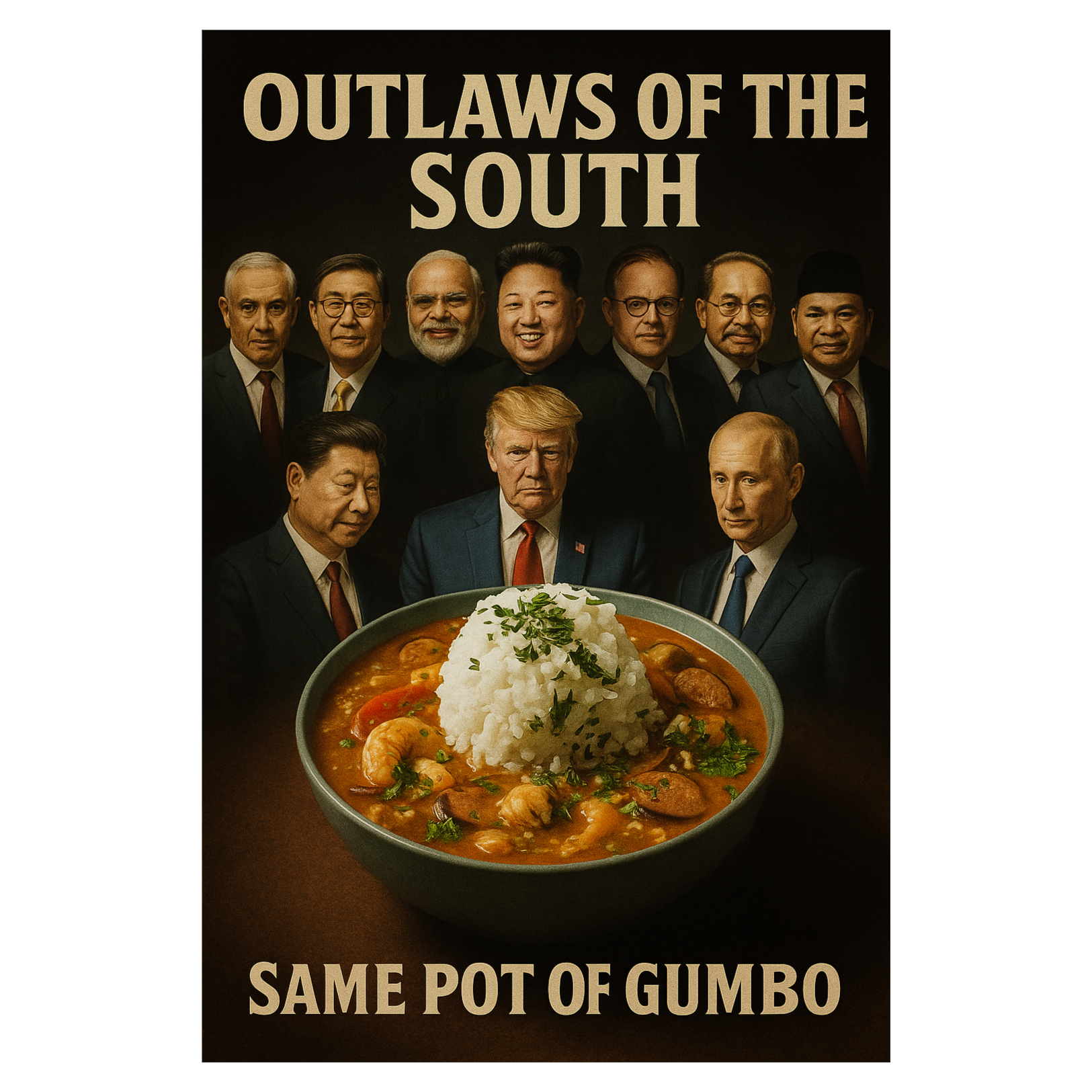 Laid-back, bold swamp rock in G Major, ~72 BPM, tracked live feel with electric and acoustic guitars bleeding together, dusty upright piano, loose drums, and loping bass, Verses: gritty lead vocal, slurred storytelling over sparse arrangement, Choruses: loud, nearly shouted with raw gang vocals on crucial lines, all tracked around a single mic for natural bleed and collective energy
