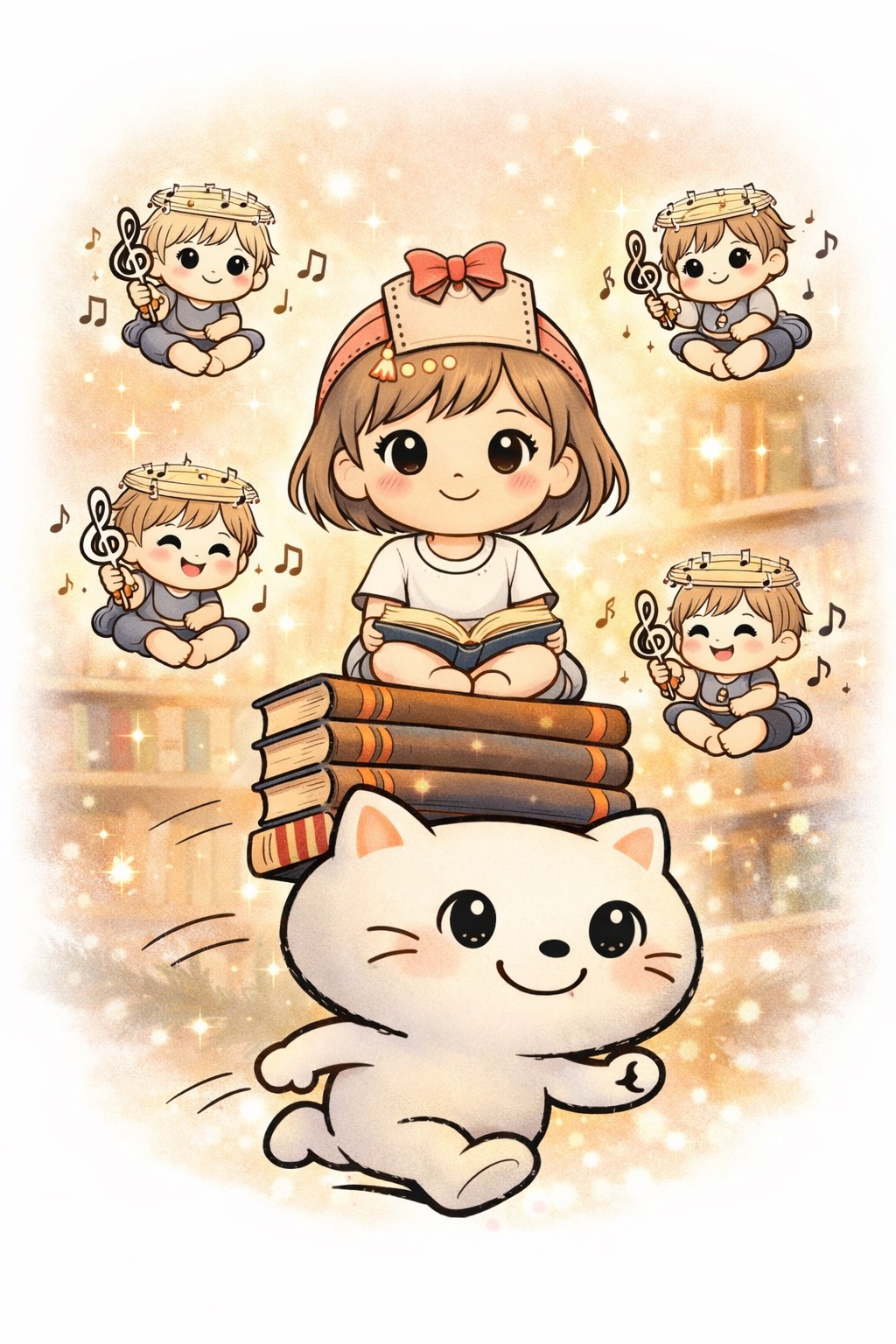 A gentle and whimsical song about “Tsundokun, ” a little character who runs around with a mountain of unread books on his head, He keeps running like the anchor runner in a relay race, searching for the perfect moment to read, Sometimes a book falls and he reads just one page before running again, The story celebrates curiosity, the joy of unread books, and the quiet happiness of knowing many worlds are waiting, Warm, playful, slightly nostalgic, and full of wonder, Style