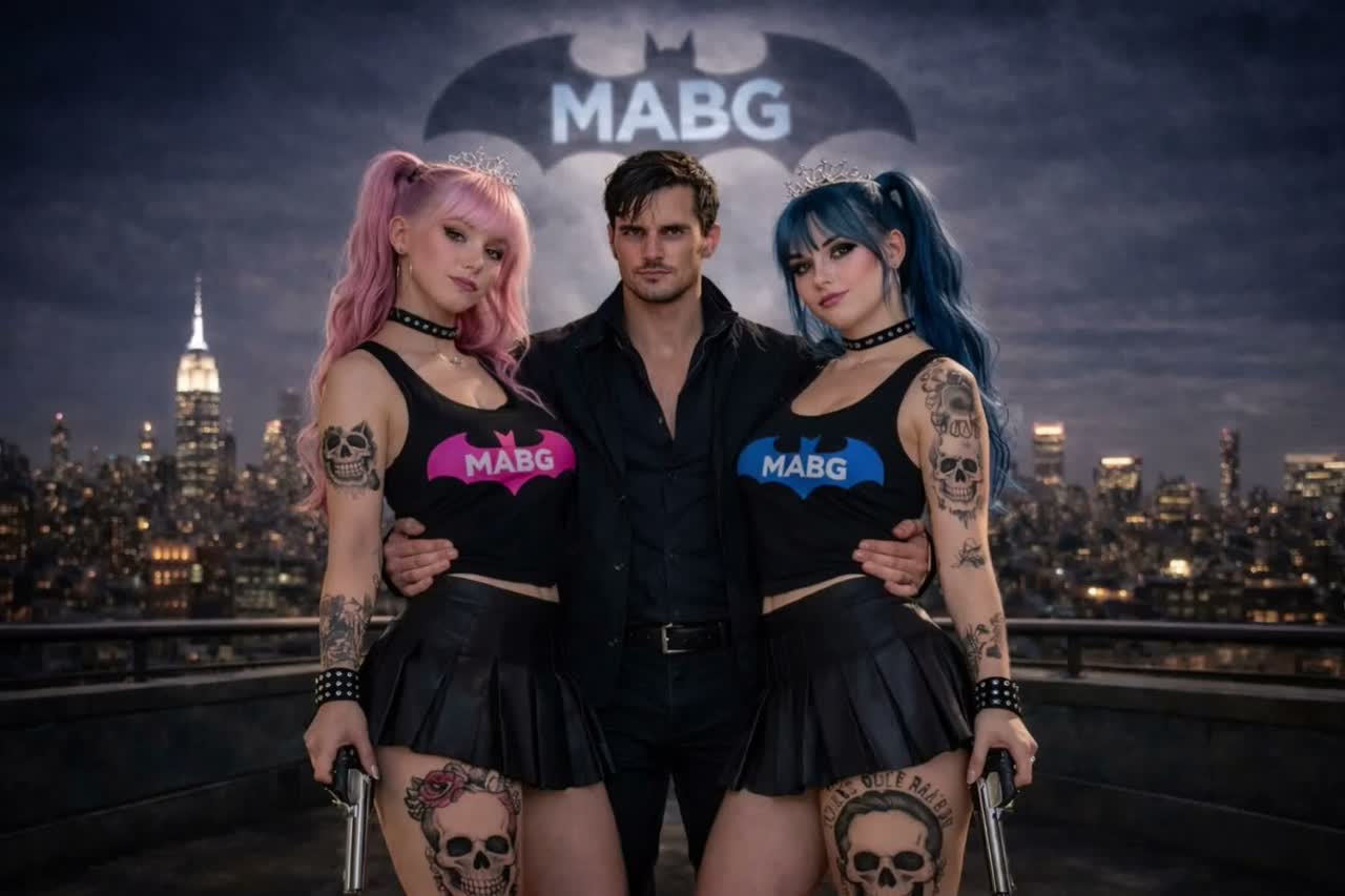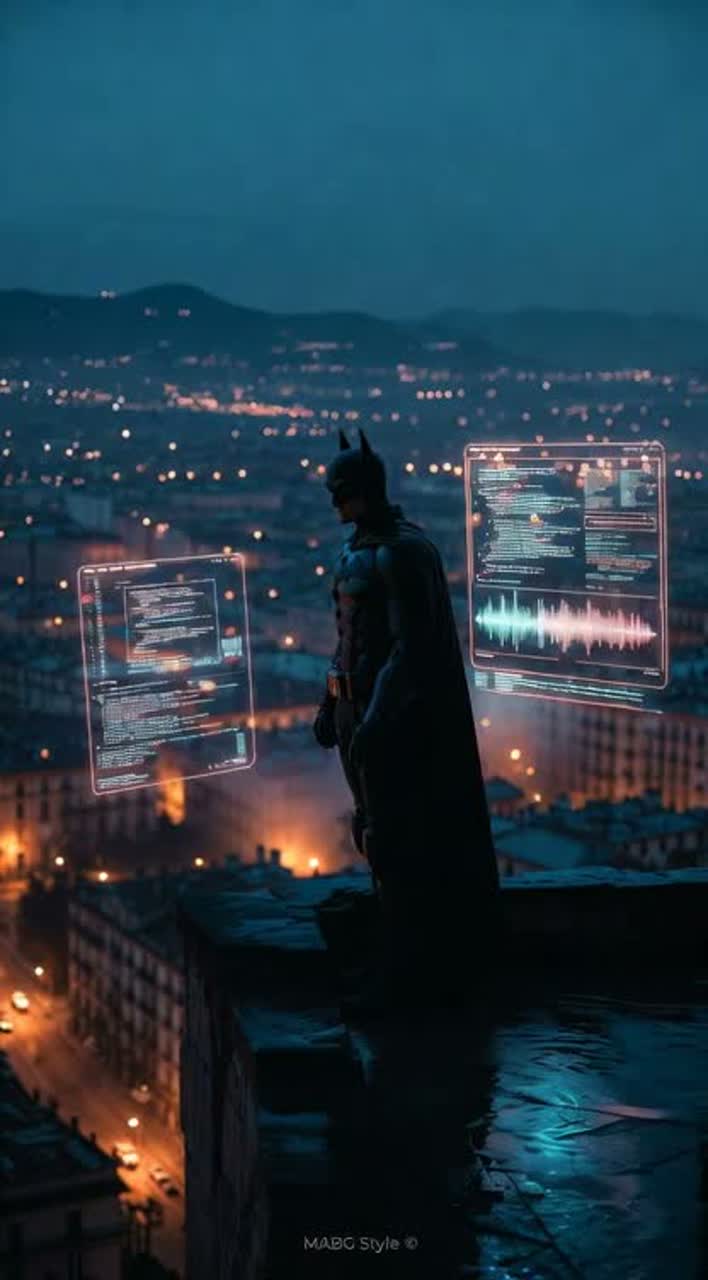 Cinematic dark progressive house fused with experimental AI sound design, tempo 122–126 BPM with dynamic tempo shifts, deep sub bass, analog distortion layers, evolving granular synthesis textures, glitch modulation, spectral morphing pads, complex polyrhythmic percussion, hybrid orchestral + electronic scoring, tension-driven structure, Arkham-inspired atmosphere, male deep narrative voice (Batman-like), AI female alien diva vocal textures (non-human, harmonic overtones), whispered layers, aggressive drop design with unexpected silence breaks, ritual tribal section with low drums and distorted chants, hyper-detailed stereo imaging, cinematic transitions, evolving arrangement complexity, immersive and unpredictable, studio quality sound, MABG Style signature ©