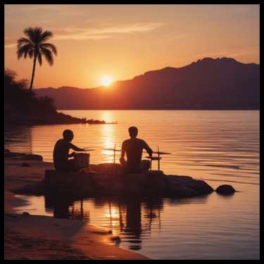Caribbean creole, contemporary reggae, lively calypso beat, acoustic guitar, steel drums, light percussions, energetic