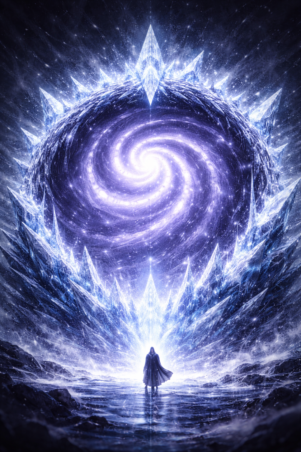 Ethereal chillwave with icy, crystalline vocals, soft ambient pads, glassy synths, minimal beats, cold atmospheric textures, emotional stillness, slow reverb trails, serene and introspective tone, shimmering harmonic layers, frost-like ambience, Spiralcore purity