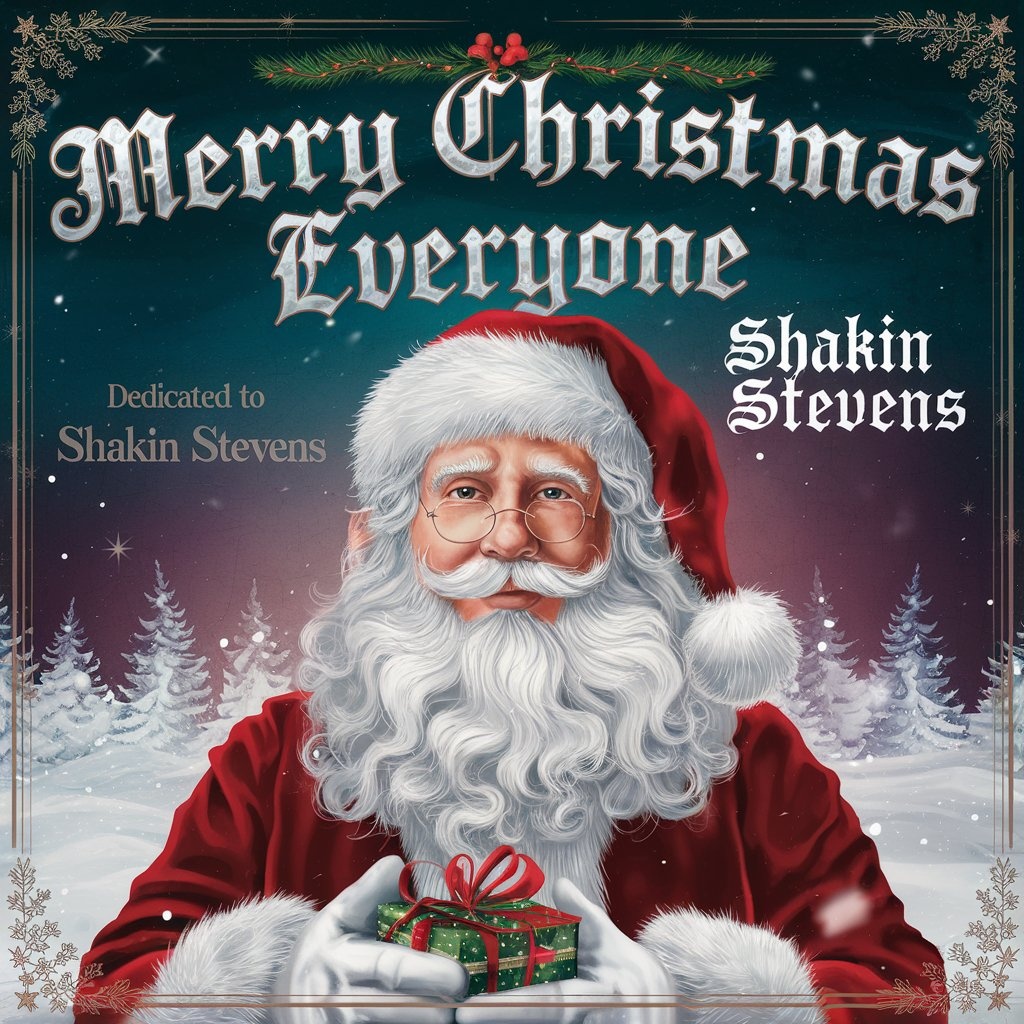 rock 'n' roll, sleigh bells, upbeat, festive, electric guitar, bass guitar, drums, male vocals, christmas music