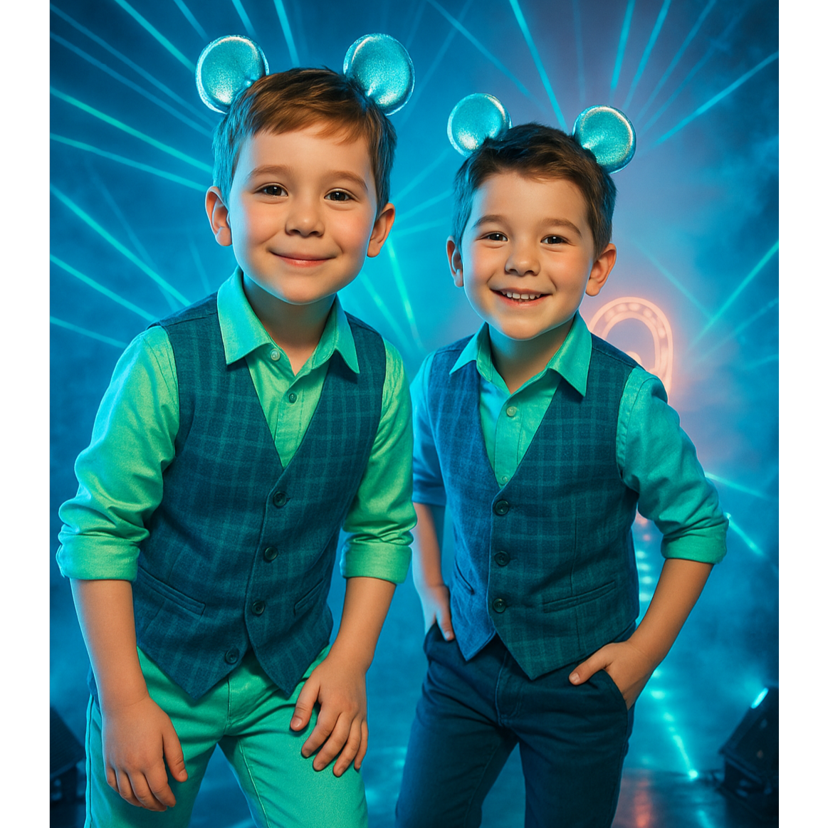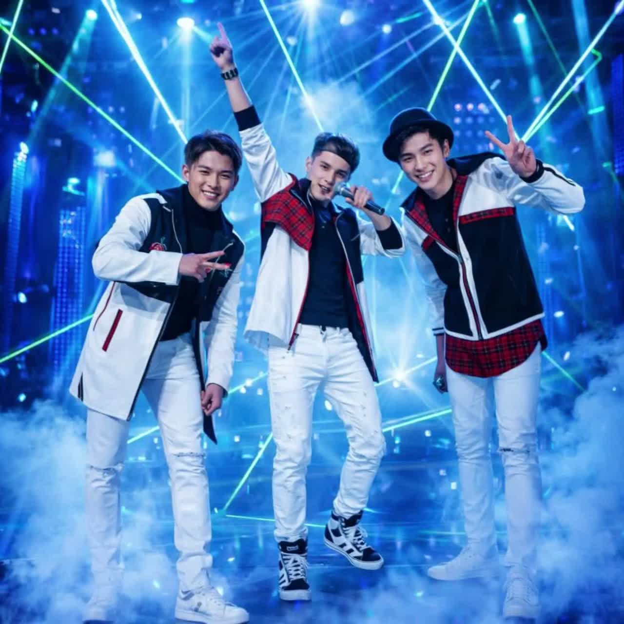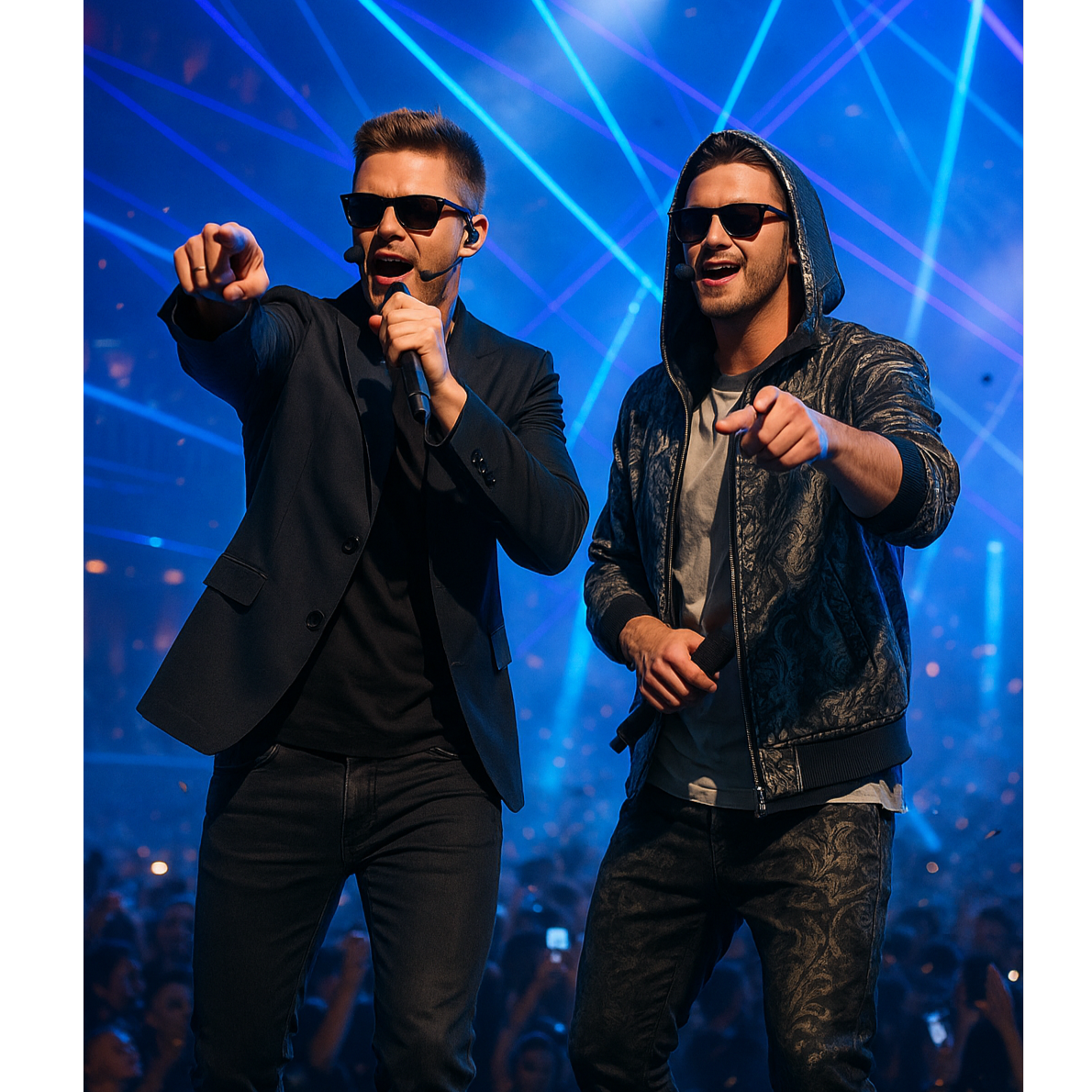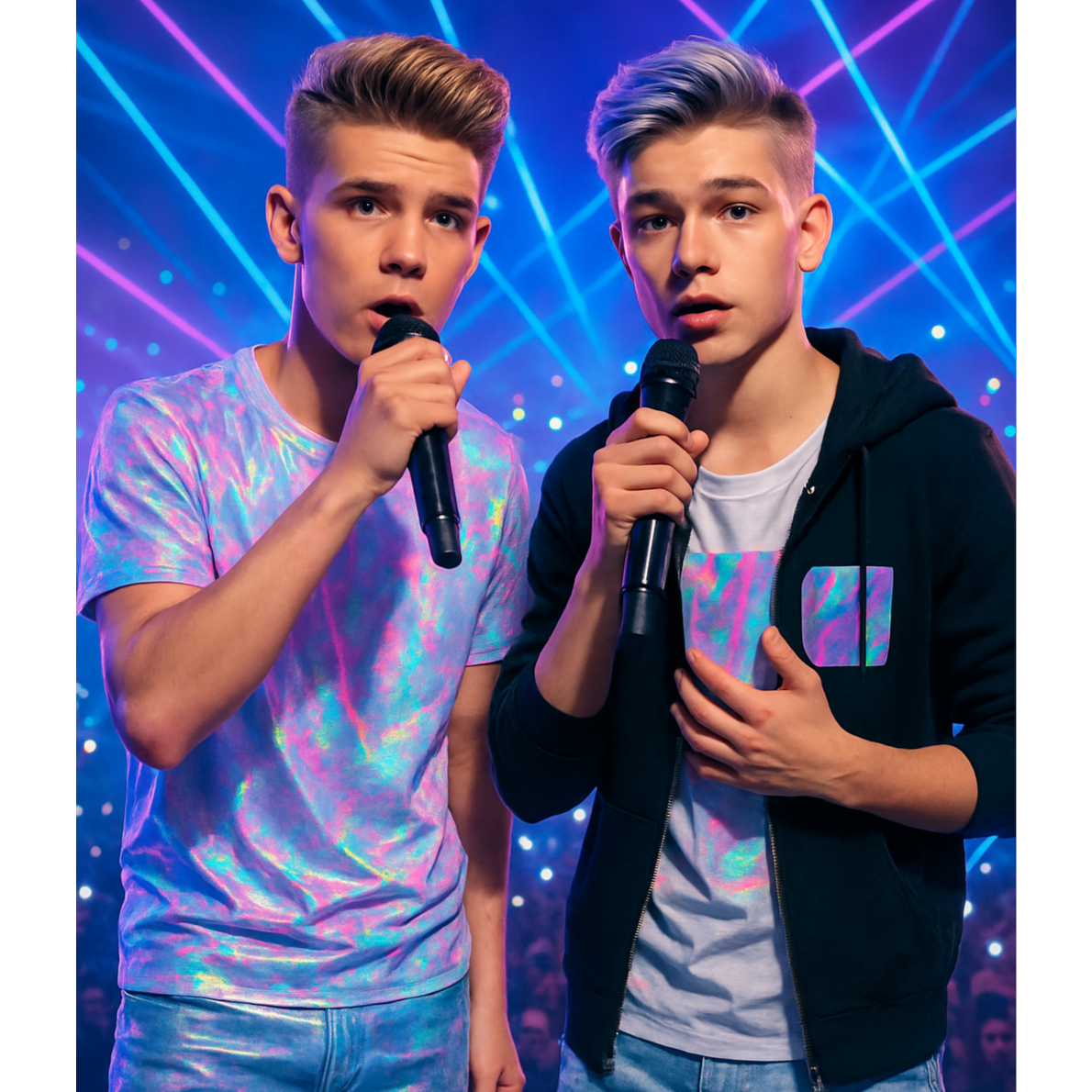 Style: Trap-Drill / club-techno-punk / UK Garage / Electro-House / EDM hybrid, Vocal: male AI duet "NEONIX" — Duet male vocals, polyphon, sweet, velvet baritone lead + airy tenor harmonies, call & response, tight doubles, Tempo/Feel: fast 140 BPM feel (Trap-Drill) with UK Garage 2-step swing; Chorus drops with club 128–130 feel, euphoric and aggressive, Instruments & FX: