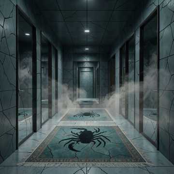 metal, Jagged alternative/experimental metal with male vocals; stuttering stop-start riffs in drop tuning, palm-muted bursts and dissonant bends over tightly sidechained, punchy bass and precision drums, Verses ride manic, Middle Eastern–tinged scalar runs with angular syncopation and harsh, rhythmic shouts; choruses lurch into half-time with wide, ominous chords and strained melodic screams, Abrupt tempo flips and metric fake-outs punctuate theatrical spoken breaks; vocal layering stacks whispers, snarls, and soaring lines for maximum tension and release, experimental, vocal, raw, dynamics, alternative metal, dynamic