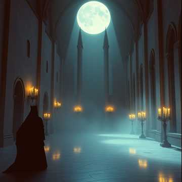 gothic orchestral with organ and violin, slow cinematic drums, castle ambience