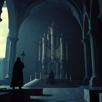 epic gothic orchestral, church organ, massive choir, cinematic dark fantasy soundtrack