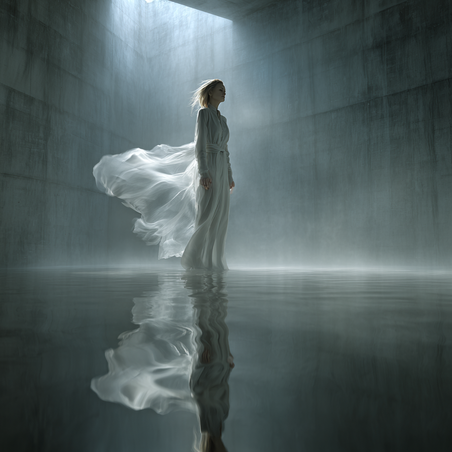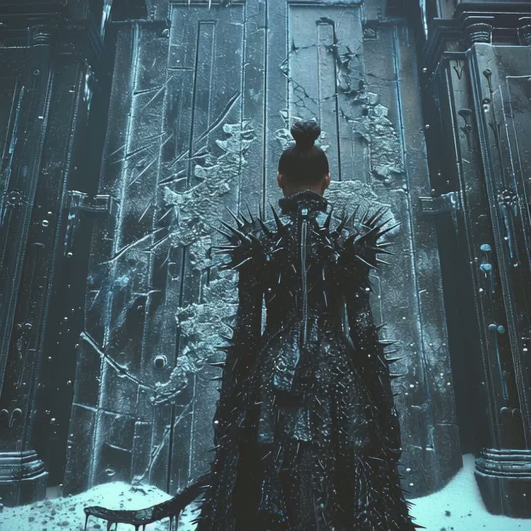 - “Cold air” foley (wind/room tone), distant single glass pings with long echo
