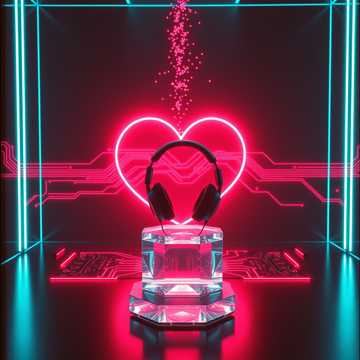 110–115 BPM romantic trap with soft heartbeat kicks, warm 808 glide bass, and gentle synthwave pulses, Breathing pads, shimmering arps, and subtle metallic hats, Emotional, intimate, futuristic love vibe