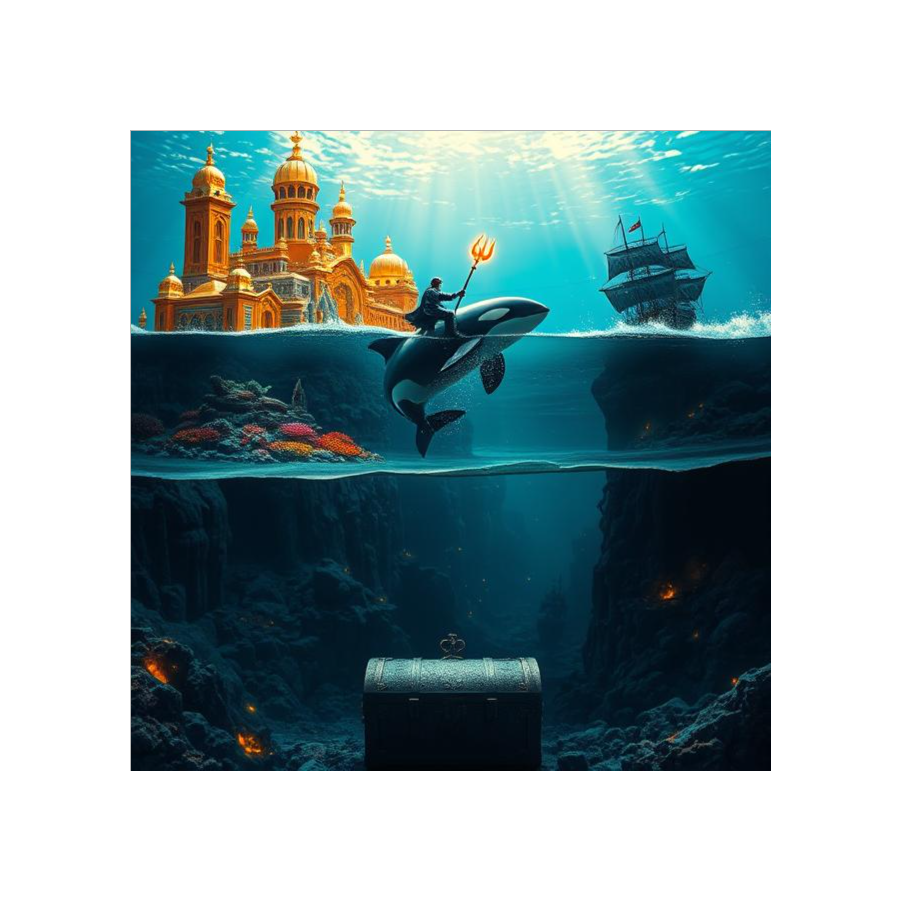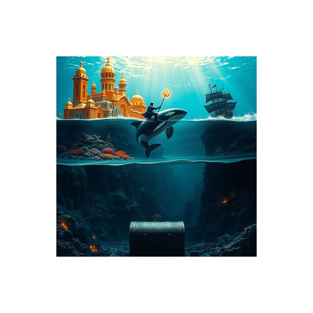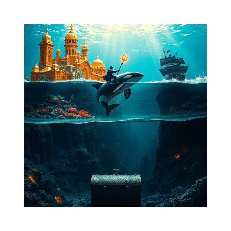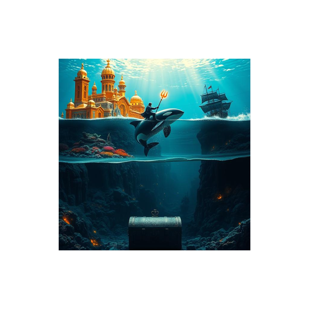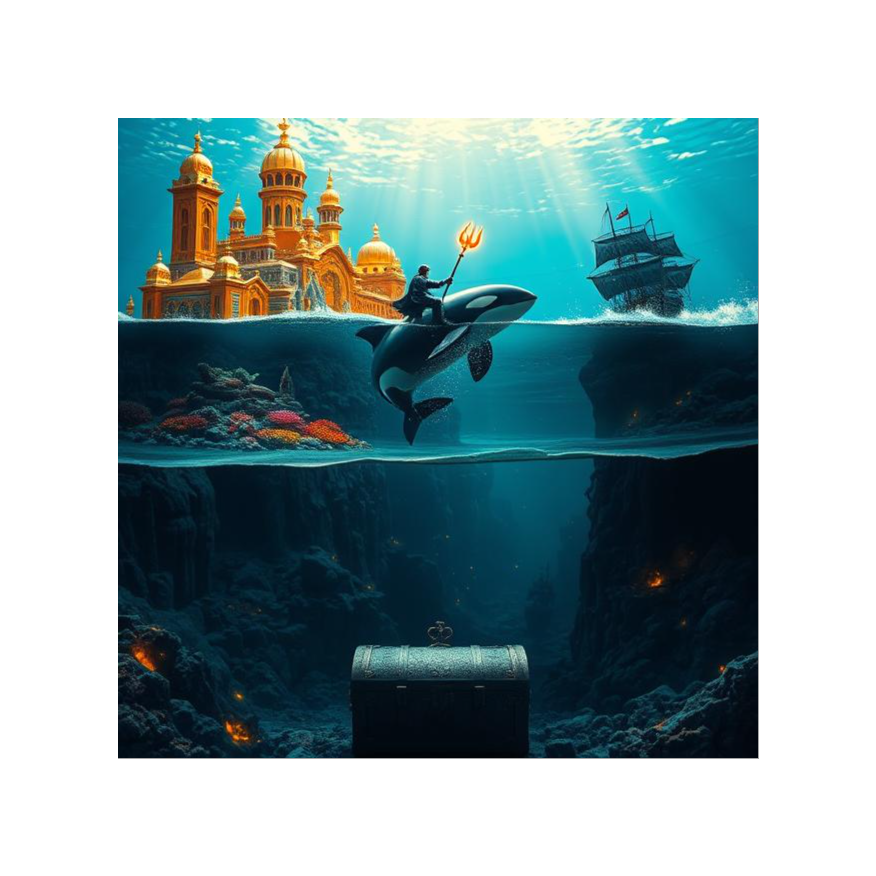 Dark cinematic sea shanty depicting underwater oppression building to revolutionary awakening, Begins with mournful, heavy atmosphere showing life in exploited depths community, Features mysterious orca calls and ancient folklore elements in middle sections, Builds from sorrowful folk ballad to triumphant anthem as oppressed people discover their connection to wild orcas, Male lead vocals with haunting harmonies, shifting from despair to hope to defiance, Orchestral progression: heavy drums and dark bass opening, mysterious flutes with whale sounds, building to full orchestral triumph, Maritime folklore meets urban struggle energy, Ancient wisdom awakening modern rebellion, Ends with powerful crescendo celebrating orca-human alliance, setting up revolution, Rap beat kicks in at verse 3, hip pop, impactful drops