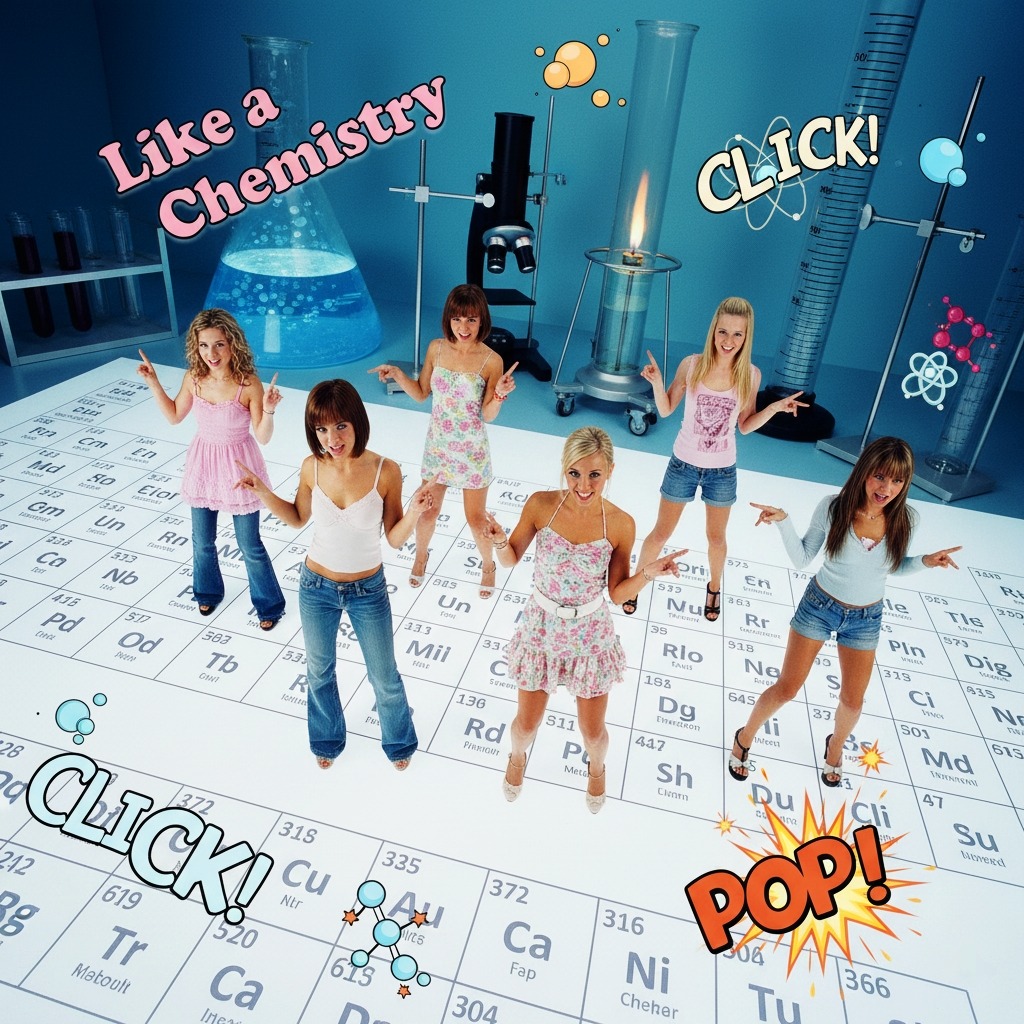 2000s Dance-Pop, Alternative Dance, 2000s, 2000s Pop, Dance, Alternative Rock, progressive, melodic, quirky, energetic, eclectic, british female vocal group, carefree vocal harmonies, simple catchy melodies, syncopated throbbing beats, defined backbeats, syncopated groovy piano stabs, driving angular guitar, accented offbeats, syncopated claps, danceable rhythm, angular keyboards riffs, high-pitched bleeping synth staccatos, integrating Electronic & Dance music into Alt Rock context, authentic sound, party, futuristic, sexual, romantic, love, passionate, anthemic, longing, humorous, urban, playful, lush, triumphant, rhythmic, uplifting, call-and-response, science, chemistry, 2000s Progressive Pop, Electropop influences, complex arrangements, quasi-symphonic instrumentation, unorthodox harmonic structures, warm fuzzy low-frequency synth bleeps, dense layered, syncopated sound, Rock & Roll and Rhythm & Blues fusion, commercial Rock sound, 2000s British Rhythm & Blues, Pop Rock influences, ‑Male vocal, ‑slow singing, ‑modern, ‑Disco, ‑House
