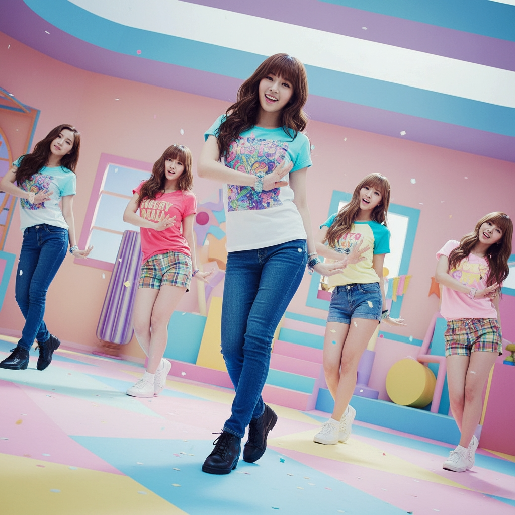 2010s K-Pop, Dance-Pop, Teen Pop, 2010s, 케이팝, korean female vocal group, syncopated, love, playful, melodic, South Korean Pop scene, catchy hooks, manufactured, Korean wave, upbeat, very fast, double-time syncopated beat, bright synth, pulsating drum, double-time hi-hat, teen-oriented, youthful, bubbly, high-pitched vocal, staccato synth leads, lush pads, warm, anthemic, romantic, uplifting, happy, sing-along chorus, 2010s Electropop, Bubblegum Dance, Bitpop influences, sustained warm fuzzy synth, subtle low-frequency synth, densely layered, compressed beat, childlike, light-hearted, bouncy, on-beat kick, high-energy, arpeggiated Chiptune synth, quirky twinkling 16-bit synth bleeps, high-pitched Bit Music synth lines, energetic, longing, bright, repetitive melodies, Bubblegum influences, ‑Slow, ‑male vocal, ‑4/4 time signature