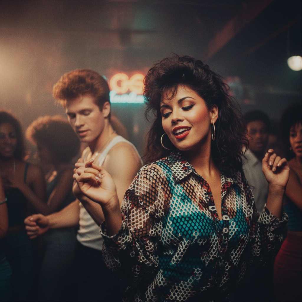 1980s Freestyle, Electro-Disco, 1980s, 1980s Electronic Dance Music, Dance-Pop, Disco, Latin Freestyle, party, love, rhythmic, nocturnal, latin american female husky deep vocal, Electro-influenced, Disco-styled melodic vocal, syncopated rhythms, Roland TR-808 drum machine, Funk breaks, simple funky moog basslines, crisp cowbell, analog synth oscillators, polysynths, high-pitched synth bells, synth brass stabs, old school Hip Hop elements, syncopated claps, agogô bells, four-on-the-floor rhythm, futuristic elements, swirling analog synth pads, open hi-hats, mechanical, repetitive, longing, punchy, bouncy, bright, atmospheric, melodic, futuristic, vocoded backing vocals, Miami sound, 1980s Contemporary R&B, Synth Funk influences, soulful passionate vocal, melismatic, slick production, lush, stripped-down, danceable syncopated groove, sharp synth stabs, energetic, bittersweet, hypnotic, syncopated drum patterns, strong backbeat, Electro-Funk, 1980s Electro influences, ‑Modern, ‑male vocal