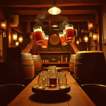 Rowdy steampunk swing-shanty with the energy of a drunken tavern victory song, Male mid-to-low lead vocals, bold and punchy with sarcastic swagger, Gang vocals and call-and-response choruses should sound like workers stomping, shouting, and laughing together, Instrumentation includes upright bass, brass (trumpet, trombone, tuba), accordion or concertina, jangly banjo/guitar, stomping percussion (boots, claps, chains, mugs), and swinging drums, Music should sway between swaggering swing verses and big stomping shanty choruses, with a raucous call-and-response bridge, Structure: stomping intro, rowdy verses, gang-vocal choruses, call-and-response bridge, layered final chorus, and drunken outro with laughter and accordion, Mood: celebratory, gritty, rebellious — the sound of workers toasting their victory with rust and rum