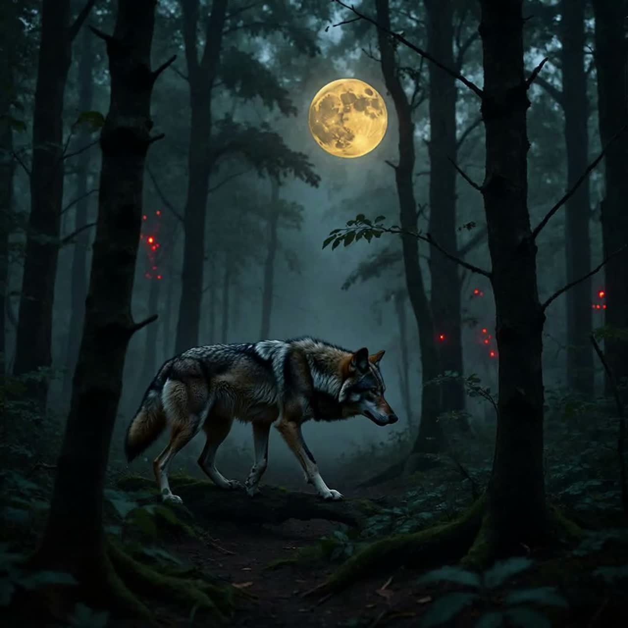 Siberian Ethno-Folk, Shamanic Trance, Heavy Frame Drums, Heavy Bass, Deep Percussion, Jew's Harp, Male Throat Singing, Overtone Singing, Ethereal Female Vocals, Whispering, Layered Harmonies, Cinematic, Dark Atmosphere, Nature Sounds, Wolf Howl, Dense Production, Reverb, Ritualistic