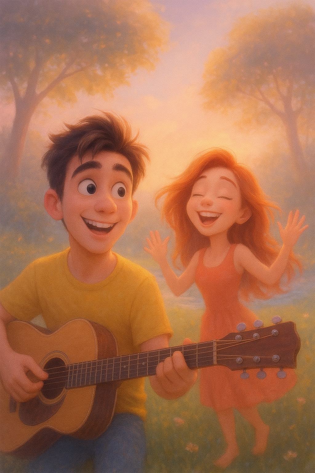 Acoustic pop douce avec touches de piano et guitare sèche, ambiance chaleureuse et nostalgique, Ajouts subtils de chœurs enfantins sur les refrains, instruments doux (xylophone, ukulélé léger), [Pont