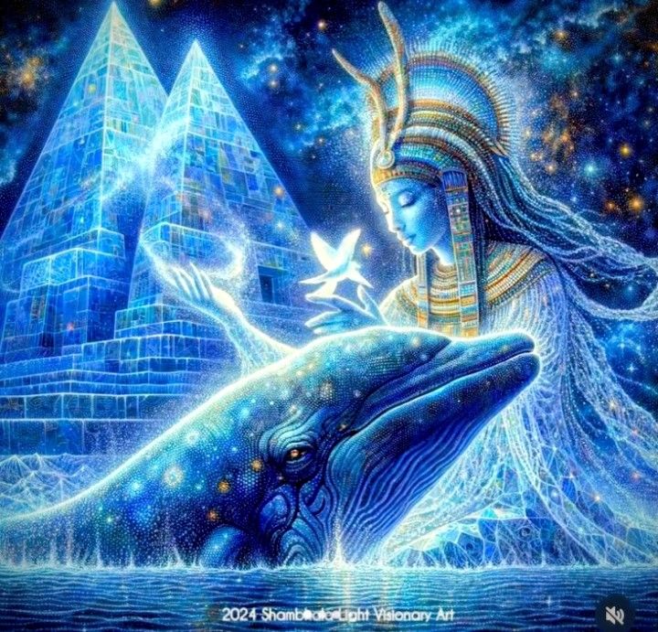 Water Invocation Tribal ceremonial soundscape with deep oceanic drums rolling like waves, low throat singing echoing the hum of the deep, and soaring crystalline vocals interwoven with whale songs — long, haunting calls vibrating through the body like liquid light, Shimmering water chimes and plasma-like synths create the feeling of a galactic OCEAN temple, Tempo 70 BPM, tidal heartbeat, powerful and expansive, Harmonic male voices chant in layers, resonating from deep grounding tones to high crystalline calls: “Oooooohhhhhh… Waaaaaahhhhhh… Haaaaaaa…” then higher: “Looooor-ahhhhhh… Aurahhhhhh… Mare’Raaaaaa…” Chorus (tribal rhythm, wave-like surges): “Whale’s Song, Ocean Flame, Cosmic tides, we call your name, Through our union, codes ignite, Seas ascend in love’s pure light, ” Bridge whispers: “Plasma flows… DNA glows… OCEAN sings… Union rings…” Closing: all voices fade into a long tidal tone with whale calls: “AUUMMMM… WAAAHHHH… MARE’RAHHHHHH…”