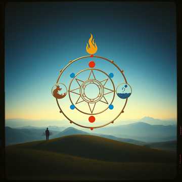 Theme: A ceremonial-style composition that journeys through the five elements—Air, Fire, Water, Earth, and Spirit—as stages of alchemical awakening inspired by Enochian magic, Mood: Majestic