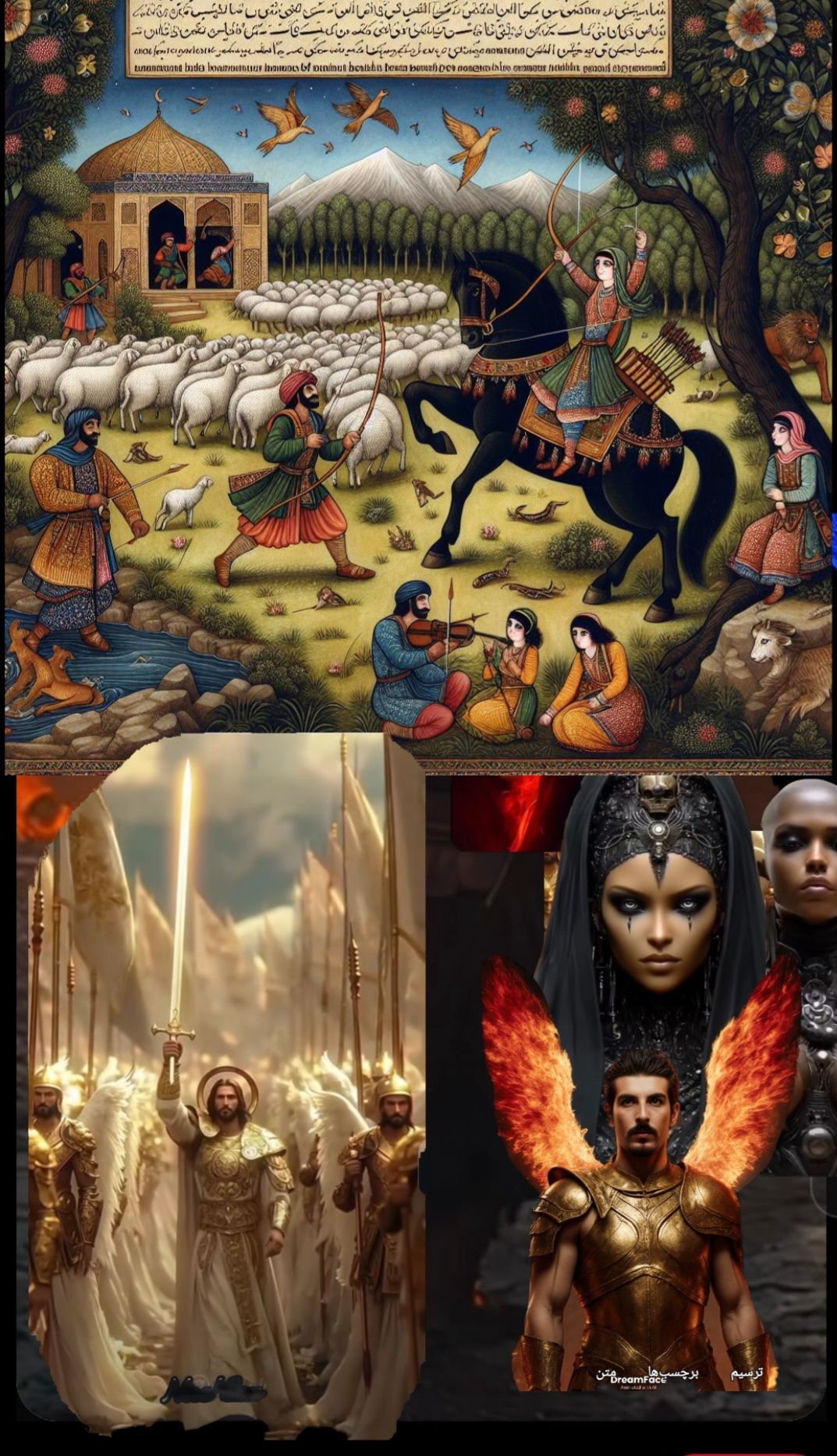 Start with a haunting solo Hormun, Bring in chang and rebab to join for the main theme—these instruments should shape the core structure throughout the track, Narrate each verse with a male soloist; at key moments, the choir echoes meaning-rich phrases from the lyrics for call-and-response, Use energetic strings and daf for battle sections, minimal oud and ney in sorrowful parts, and folk instruments for hope at the end, Always blend choral repeats with solo lines, a haunting intro, The style should blend epic Persian classical with modern orchestral elements, using kamancheh, daf, oud, ney, and string textures for atmosphere and transitions, For each verse, have a male soloist narrate the main story lines, At key moments chosen for dramatic impact (matching meaning), the choir should echo or answer with a repeated word or phrase directly from the lyrics (“boro andaki”, “na jaye nakoost”, “to ra shir-e-morgh arezoo”), creating a call-and-response effect, Instrumental changes highlight
