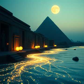 Mood: A profound, fluid, and ecstatic bridge between the Nile's silt and the Sirius star-dust, This is music for a ceremonial dance that pulls the cosmic down into the body and lifts the earthly towards the stars, The mood is deeply mystical, emotionally charged with devotion and awe, trance-inducing yet melodically rich, It feels ancient, wet, and glittering—like dancing in moonlight on the banks of a river that flows into the Milky Way