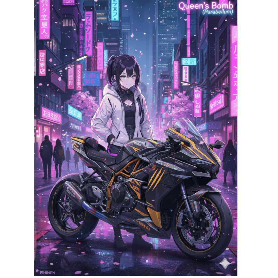 powerful female vocal, emotional and hopeful tone, energetic rhythm, violet neon atmosphere, engine sound intro, bright emotional ending, cyber rock / symphonic EDM / anime cinematic ending theme