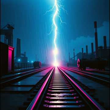 Modern Industrial Gothic Metal, Male aggressive deep power vocals, heavy distorted down-tuned guitars, mechanical drum beats, double kick pedal, dark cinematic synths, high voltage electricity sound effects, gritty and polished production, 145 BPM