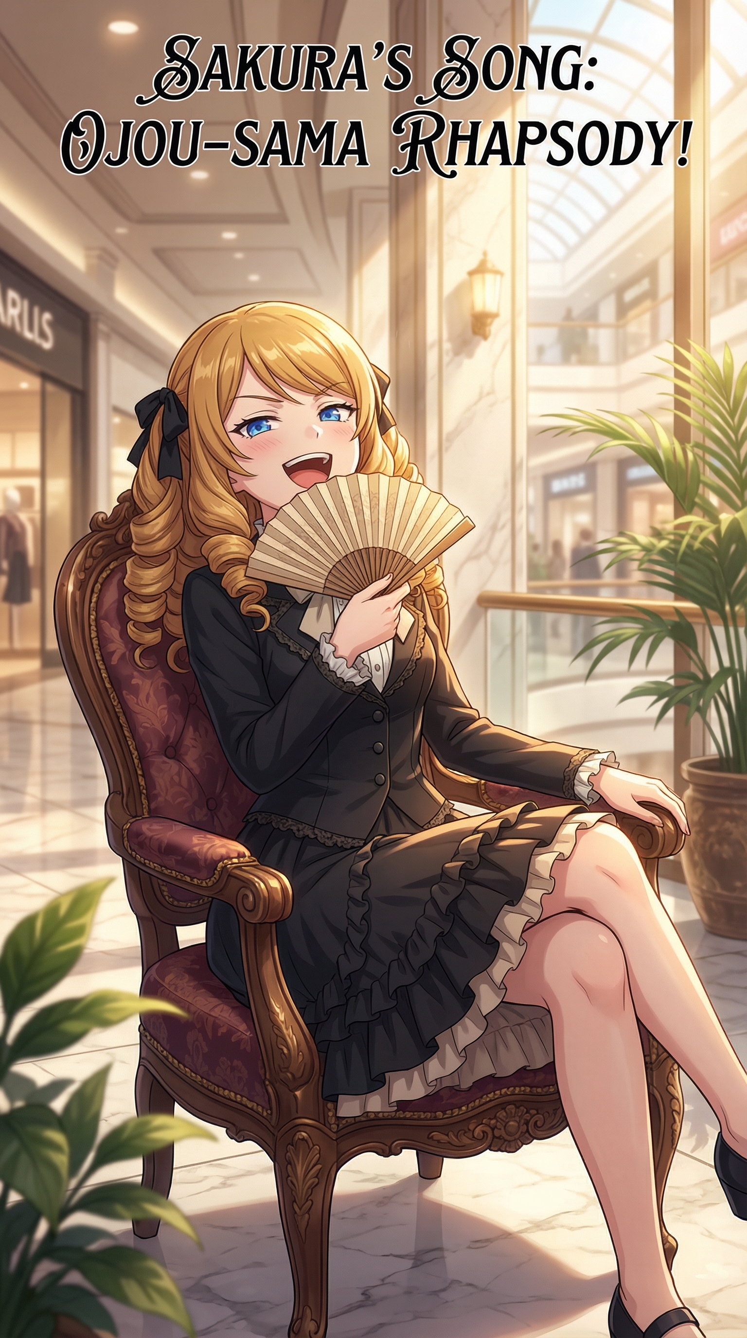 A high-energy J-Pop/Idol Pop/Synth Pop song with bubblegum gloss, bouncing between sparkling synth leads, punchy dance beats, and funky bass, Verses strut with swagger, pre-chorus swells via ascending synths; chorus bursts open with layered vocals, handclaps, and sugary hooks, Dramatic orchestral stabs punctuate her signature laugh, playful xylophones color comedic culture shock moments, and suspenseful strings add drama to sudden tsundere twists, Quirky music box breakdown in the bridge sets up a key-change, all tied together by talking-singing and theatrical flourishes, led by a single bright, haughty 17-year-old Japanese female voice, Loud Crowd on Chorus