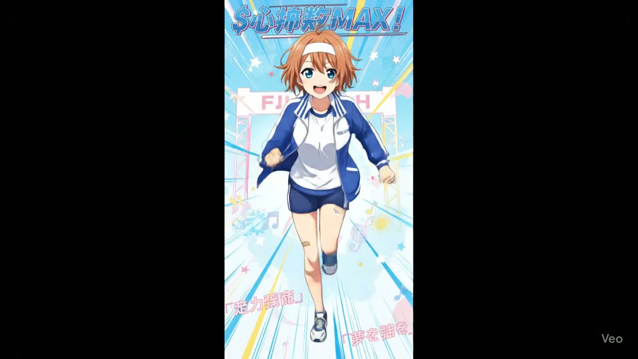 An incredibly high-energy, fast-tempo J-Pop rock anthem, Think of the opening themes for sports anime, The track kicks off with a blistering electric guitar riff and a rapid-fire drum fill that barely lets up, The verses are punchy and rhythmic, the pre-chorus builds tension with palm-muted guitars and a rising synth arpeggio, and the chorus explodes with power chords, a driving bassline, and Haruka's powerful, clear vocals, A short, technical, and melodic guitar solo follows the second chorus, The overall vibe is pure, unadulterated, optimistic energy, 17 y, o, energetic, scrappy, and athletic female japanese vocalist