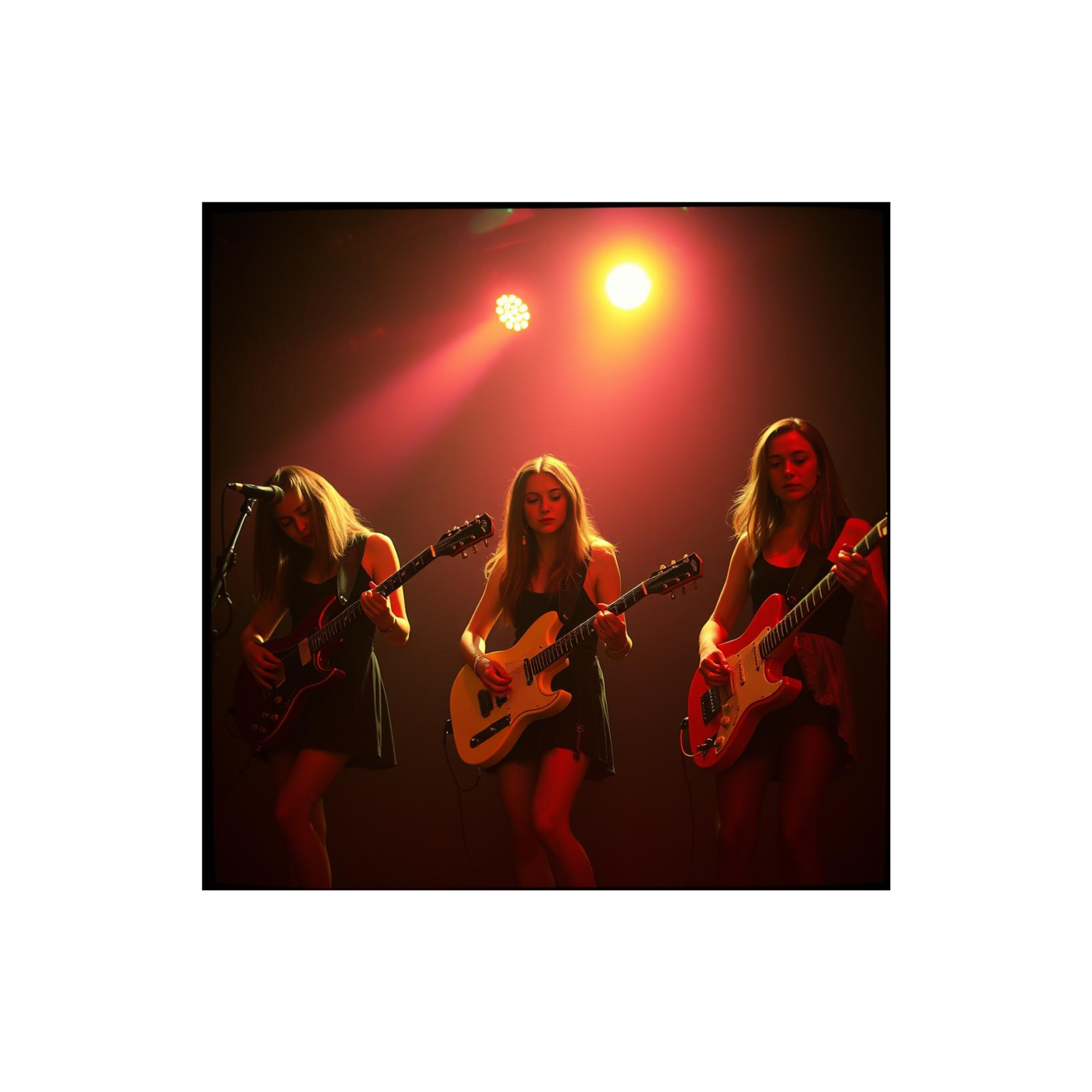 Lo-fi indie rock demo recorded in a cramped college rehearsal room, [Instruments -Two electric guitars (Rickenbacker 12-string – Mari, Rickenbacker 6-string – Cassi), Fender bass (Ashe), Vox Continental organ (Vienna), and drums (Kallie), ]
