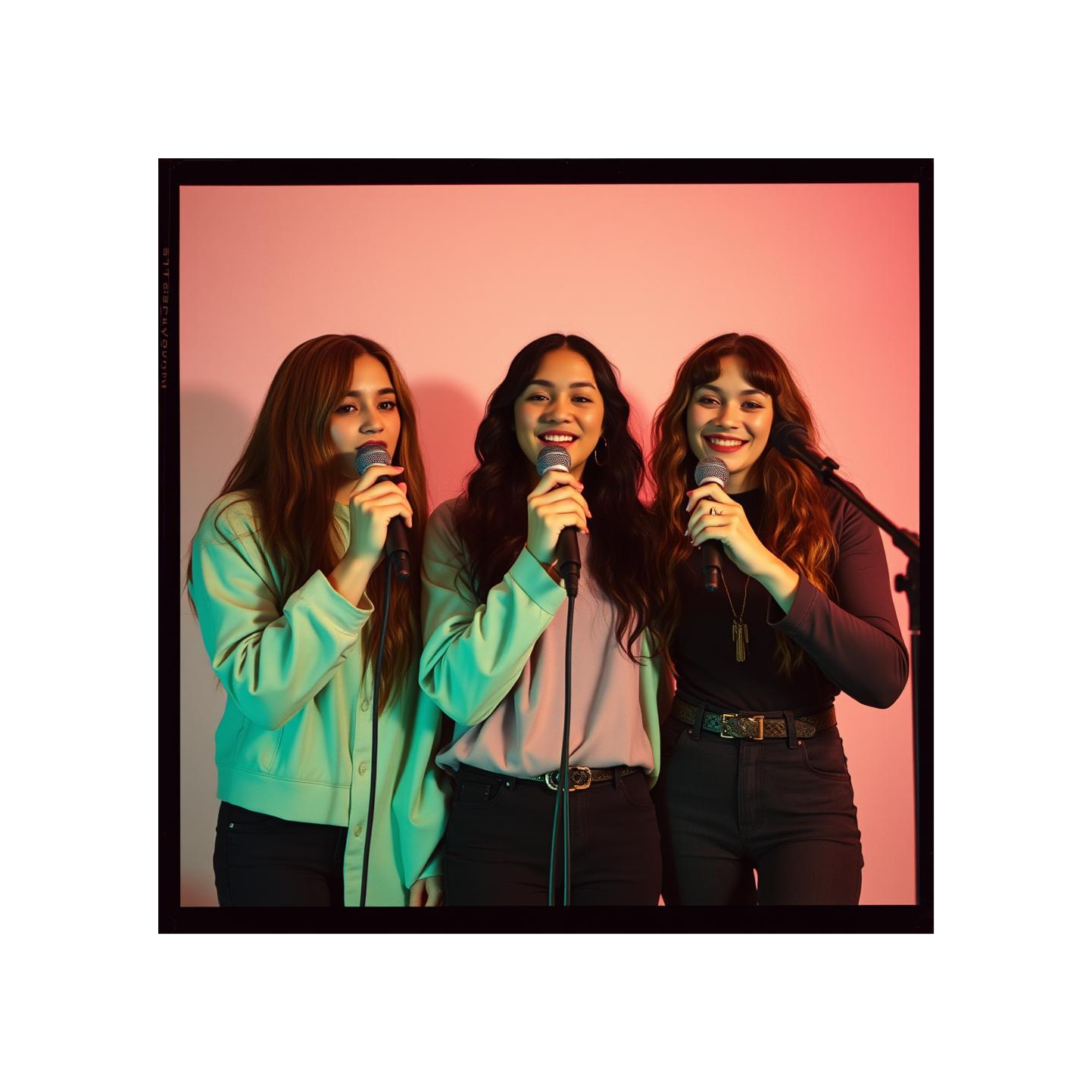 [Sweet young girl voices with sweet girl group harmonies floating]