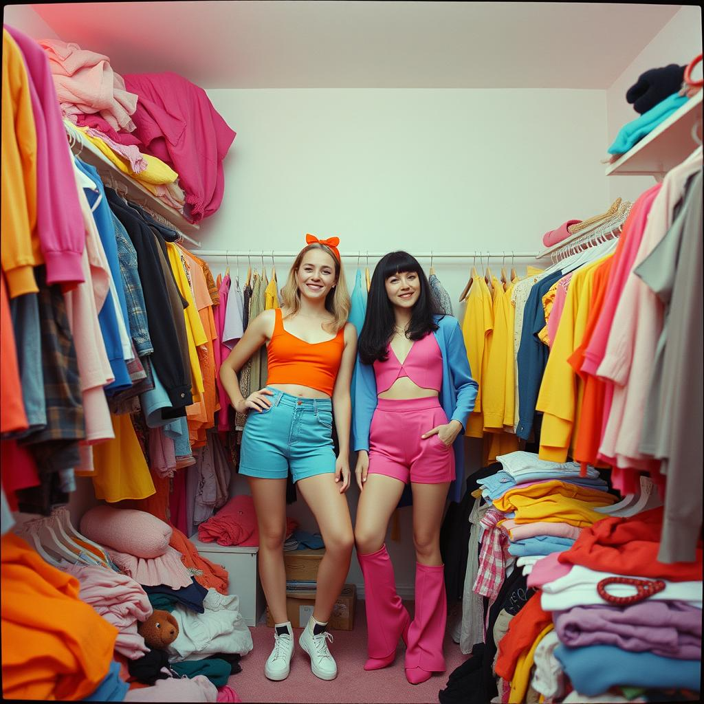 [Sweet young girl vocals & dreamy, layered, Girl Group harmonies, contrast raucous loud fuzz bass, and grunge band, Verses sung in unison, pre-choruses in thirds, choruses in lush stacked harmonies, bridge half-spoken, outro soft and sweet, Mood is fun, flirtatious] [Wall of Sound]
