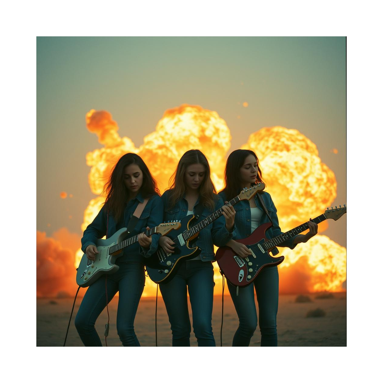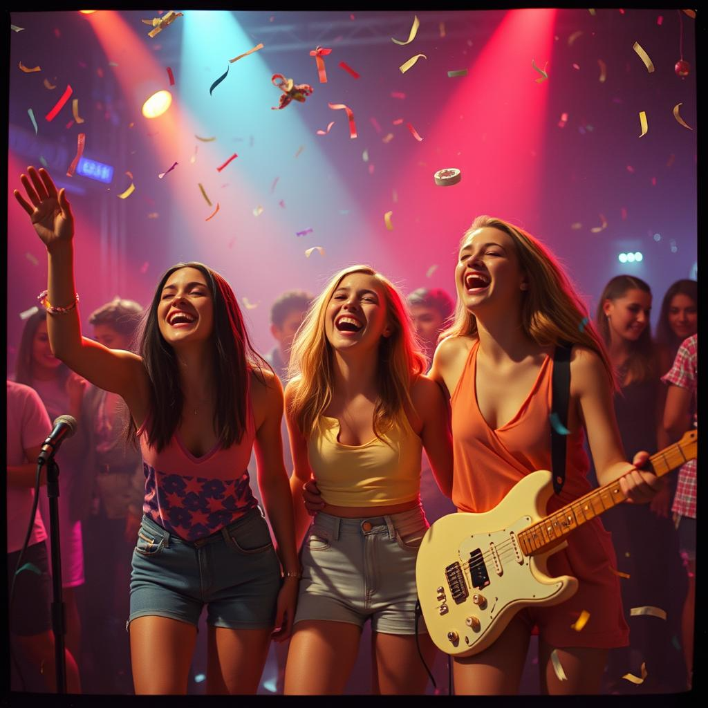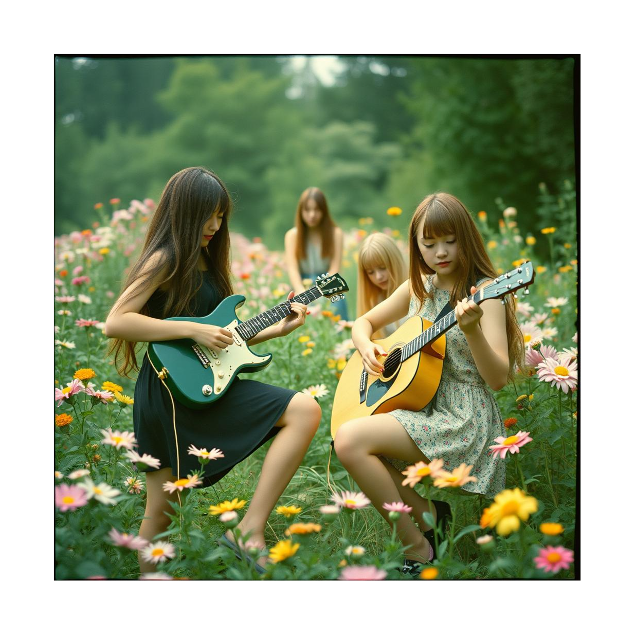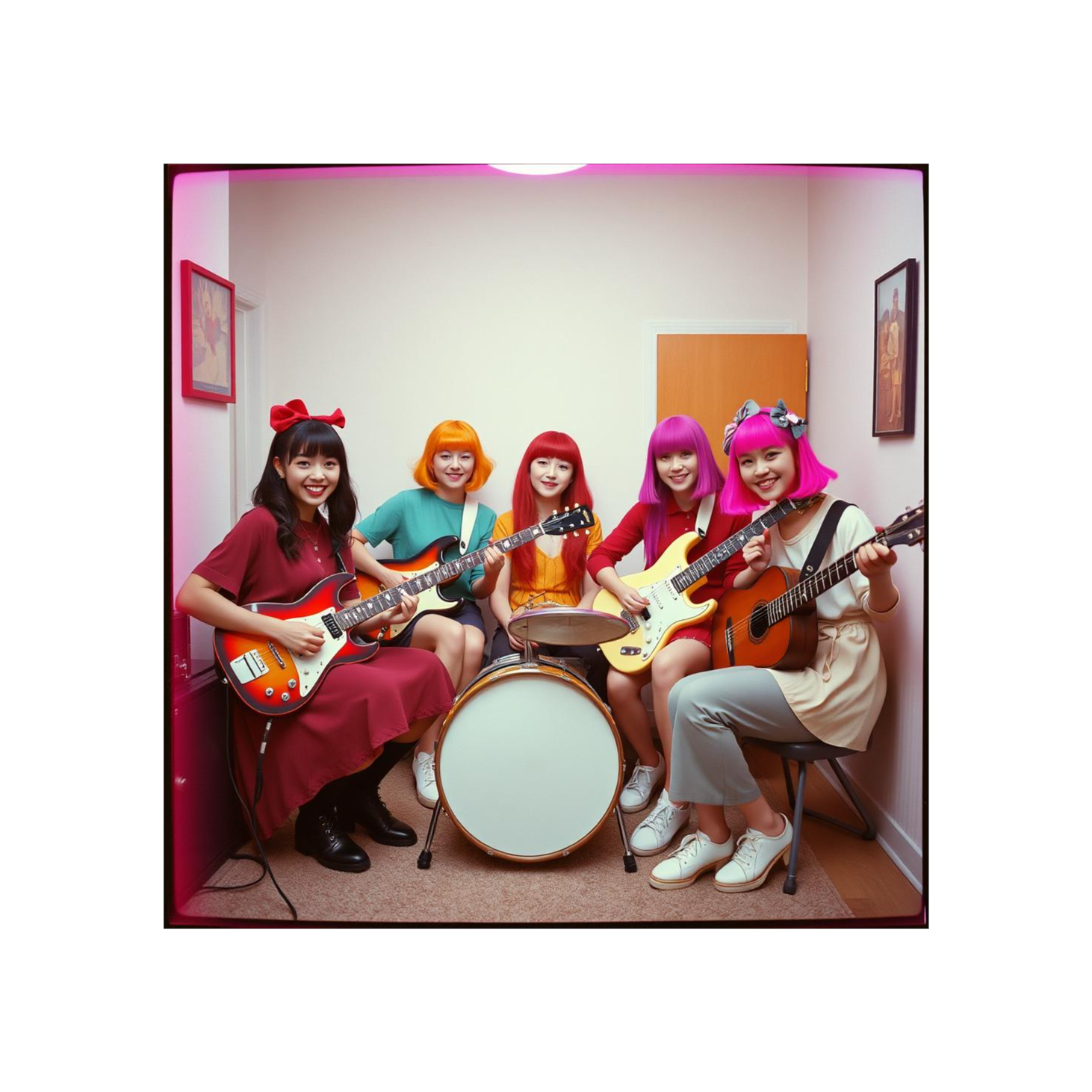 [Style: Lo-fi indie rock demo, Raw all-girl indie rock band, playful and awkward like a scene in an indie rom-com, ]